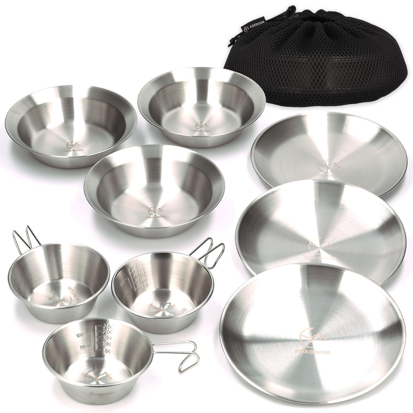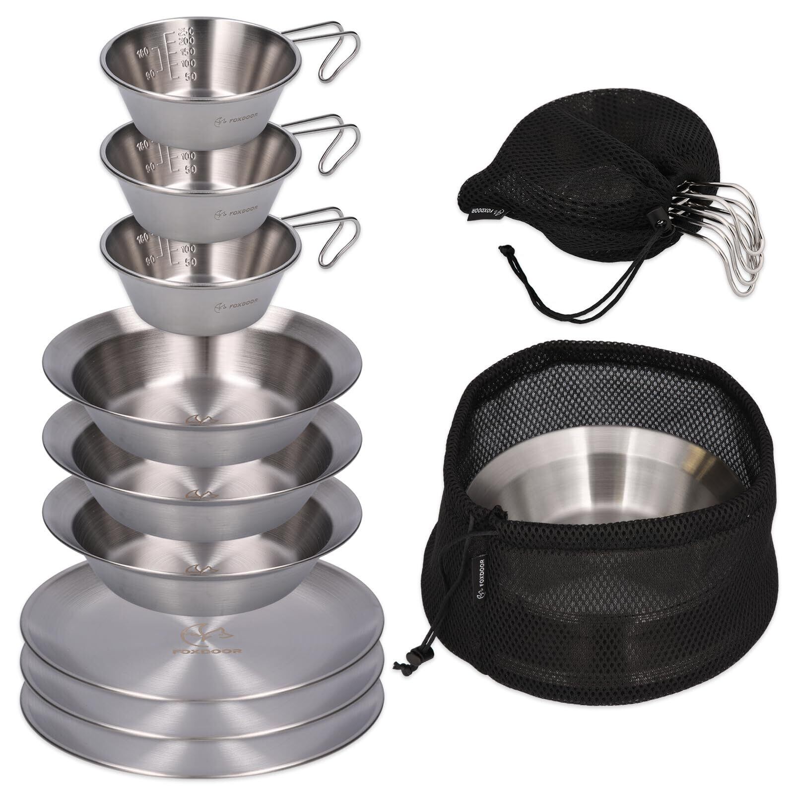 FOXDOOR アウトドア 食器セット 3枚組セット 4枚組セット シェラカップ コンパクト 収納 ステンレス キャンプ バーベキュー ファミリー