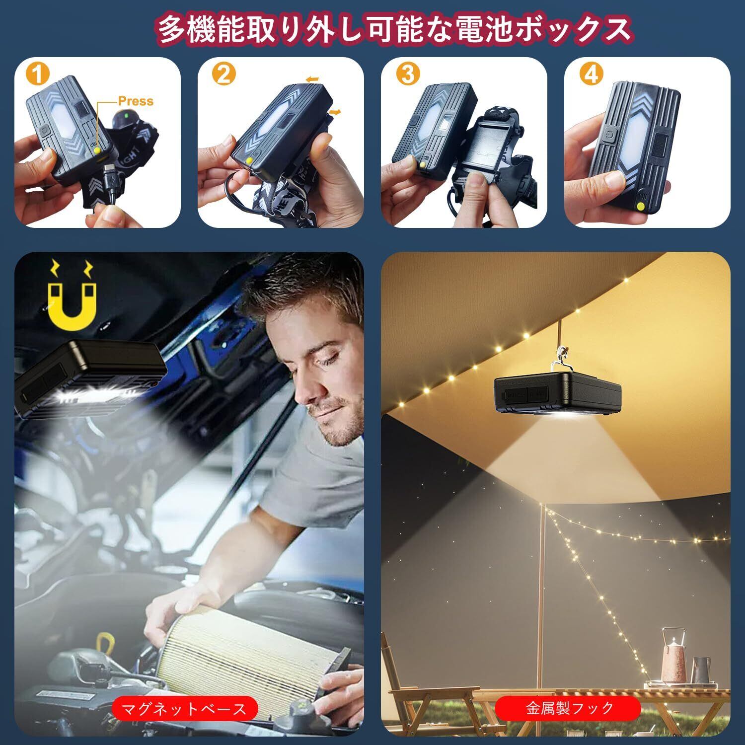 【2025業界革新のな取り外し可能電池ボックス夜光ヘッドランプ】 私たちはユーザーが利便性と実用性を非常に重視していることをよく知っています。そこで、この革新のな取り外し可能電池ボックスのヘッドライトを特別に設計しました。工具を使わずに簡単に取り外すことができる電池ボックスは、単独で照明ランプとして使用することができます。7800 mAhの大容量バッテリを内蔵し、長時間の航続を可能にします。マグネット付き、電池ボックスを金属表面に簡単に吸着させ、作業用ライトとして使用することができ、両手を解放し、作業効率を効果的に高めることができます。吊り下げフック付き,電池ボックスをテント内にぶら下げるのに便利です,木の枝や他のぶら下げ点に,キャンプライトとして使用します。多機能な用途を組み合わせたヘッドランプです,アウトドア探検や日常照明に最適です。カラー夜光バーを搭載、ヘッドランプにより多くの美しい色を加え、夜間の視覚効果を豊かにする。
