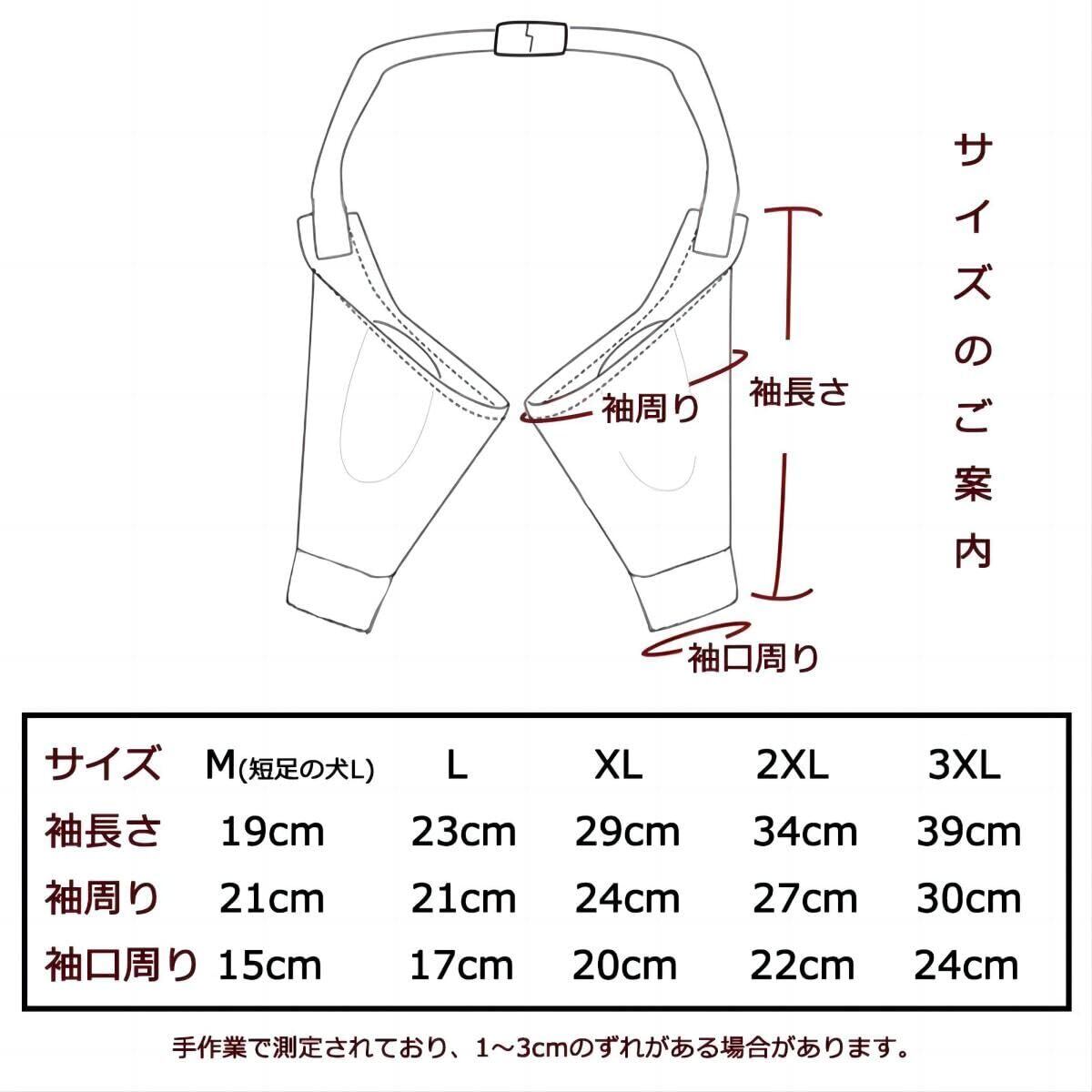 M(短足の犬L):袖長さ: 19cm; 袖周り:21cm; 袖口周り:15cm