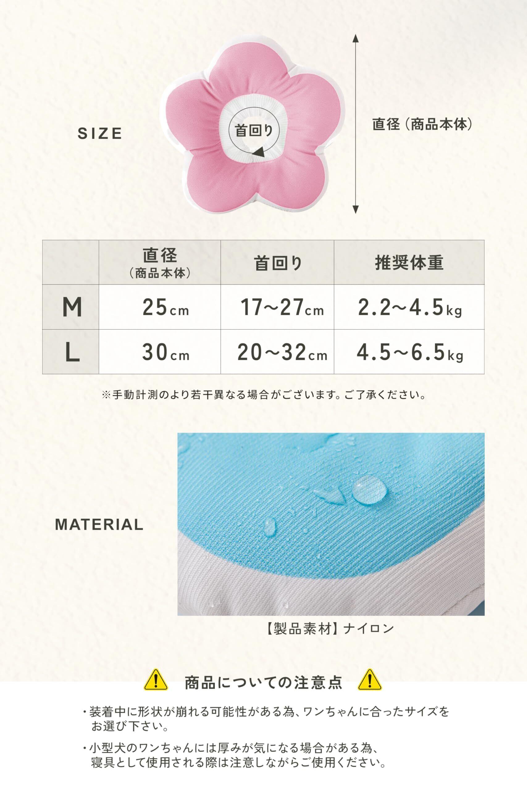【商品の仕様とカラーバリエーション】 素材: ナイロン(防水加工済み) / サイズ: M(直径25cm・首回り17〜27cm・推奨体重2.2〜4.5kg)、L(直径30cm・首回り20〜32cm・推奨体重4.5〜6.5kg) / セット内容: ソフトエリザベスカラー1点 / カラーバリエーション: ブルー・ライトピンク・ミントグリーン・パープル・ディープブルー・サーモンピンク