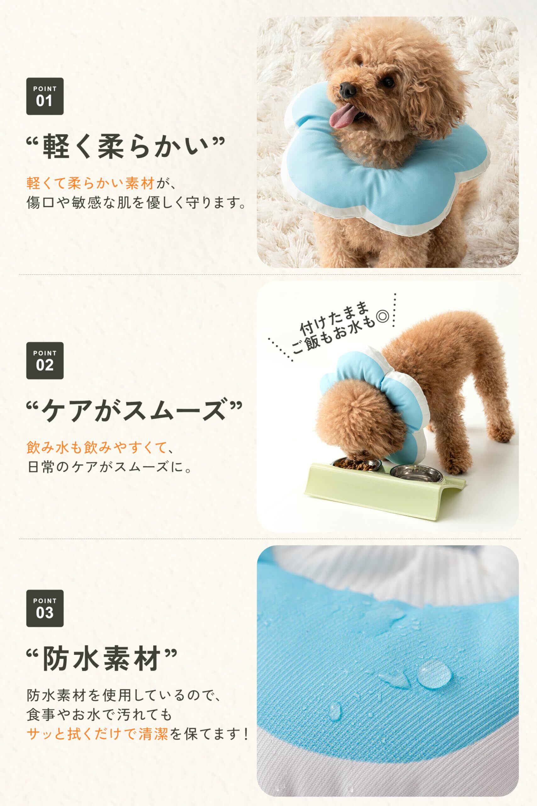【日常使いに嬉しい多用途デザイン】 このソフトエリザベスカラーは、食事や飲水の邪魔にならない設計で、装着したままでワンちゃんの日常生活を妨げません。また、枕としても使える柔らかなデザインなので、室内でのリラックスタイムはもちろん、旅行や外出時にも大活躍します。