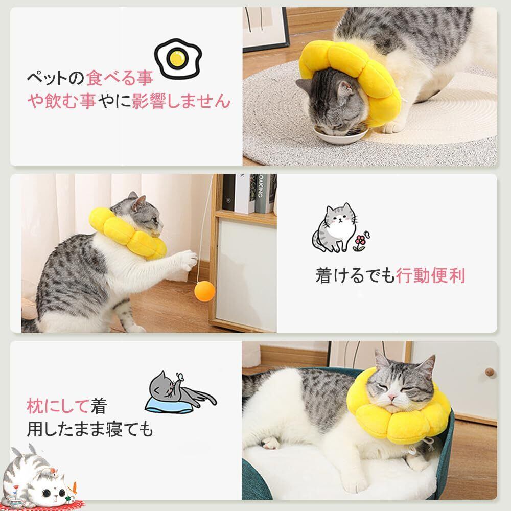 猫 犬 エリザベスカラー ペット用品 引っ掻き防止 調整可能 柔らかい 布製 超軽量 通気性 かわいいひまわり型 手術後のケアに ペット保護襟 (M)