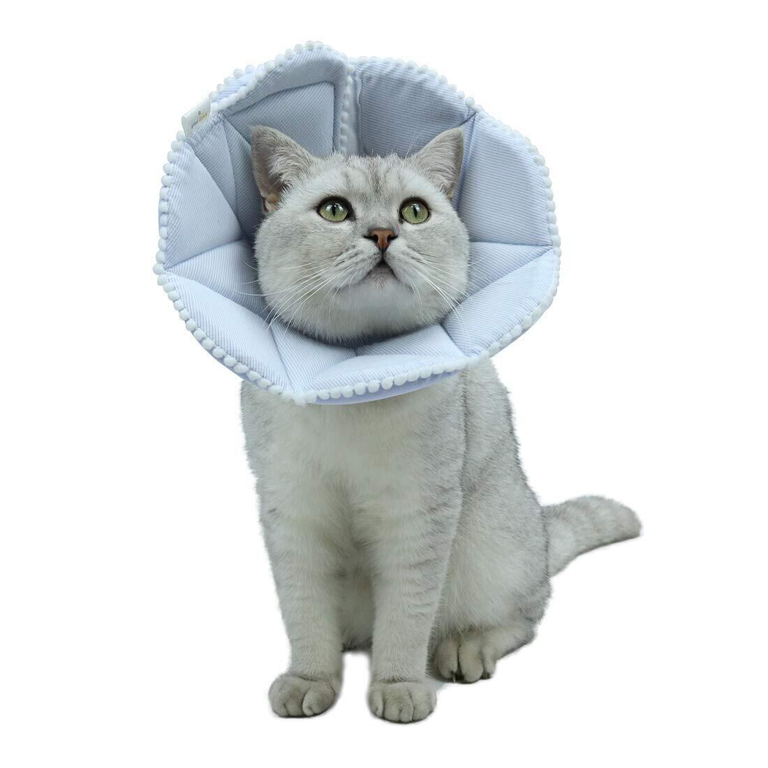 WZ PET 柔らかい エリザベスカラー 猫用 小型犬用 手術後傷口保護首輪 傷舐め防止 引っ掻き防止 調整可能 軽量 通気性 可愛 (S (首20~23cm) 青い)
