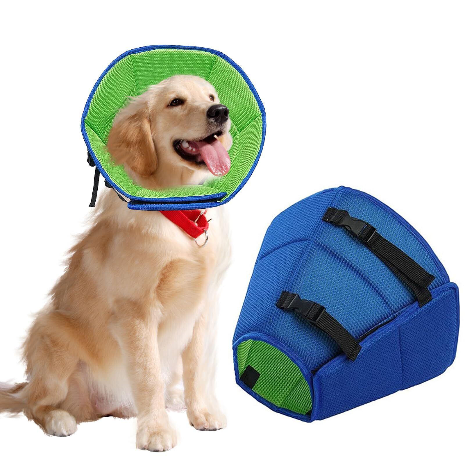 【在庫セール】CMD エリザベスカラー 犬 猫 通気性 調整可能 柔らかい 軽量 傷舐め防止 引っ掻き防止 術後傷口保護 術後ケア 中大型犬用 (ブルーグリーン, L:深さ26.5 cm、首周り約40~48cmに対応) | wakuwakuland