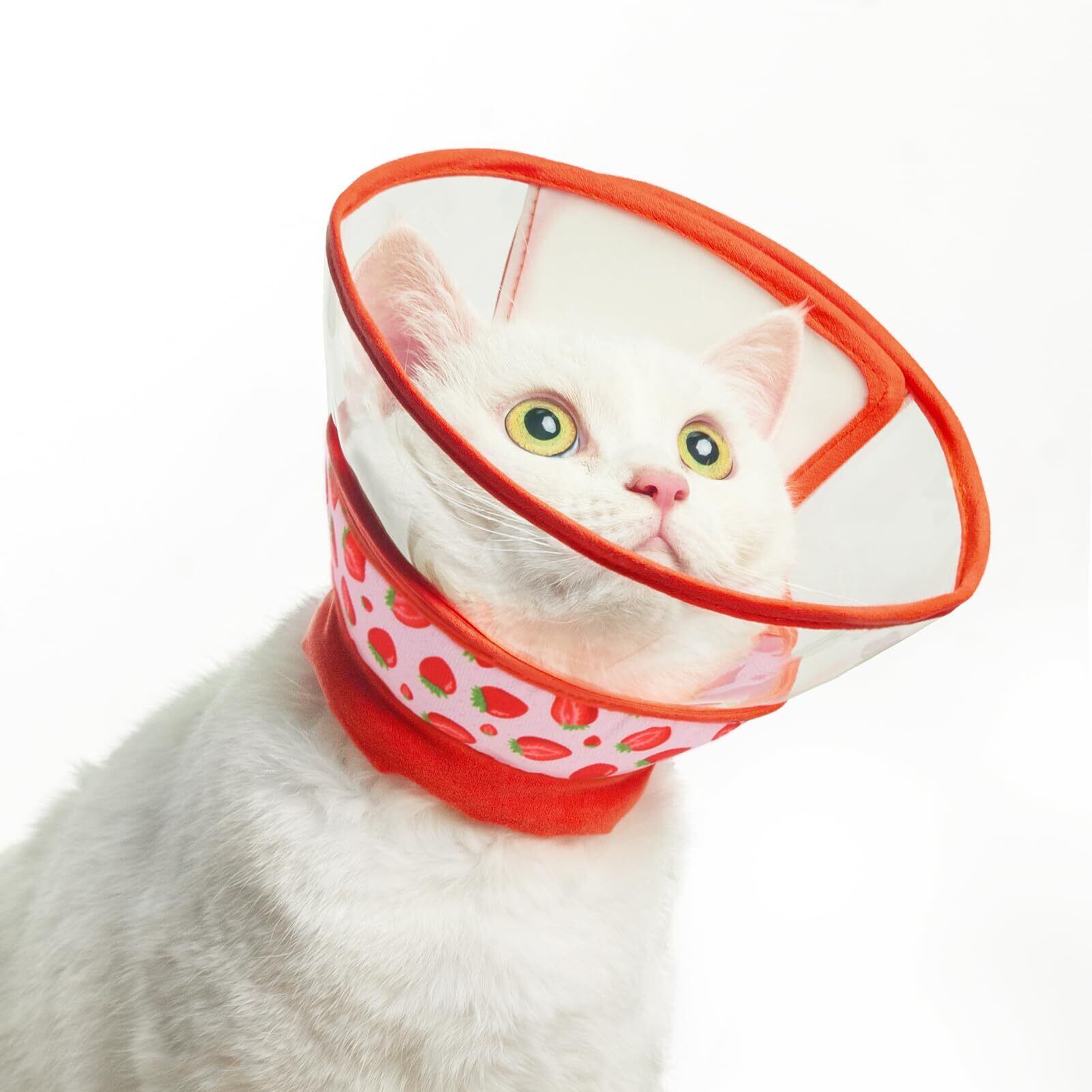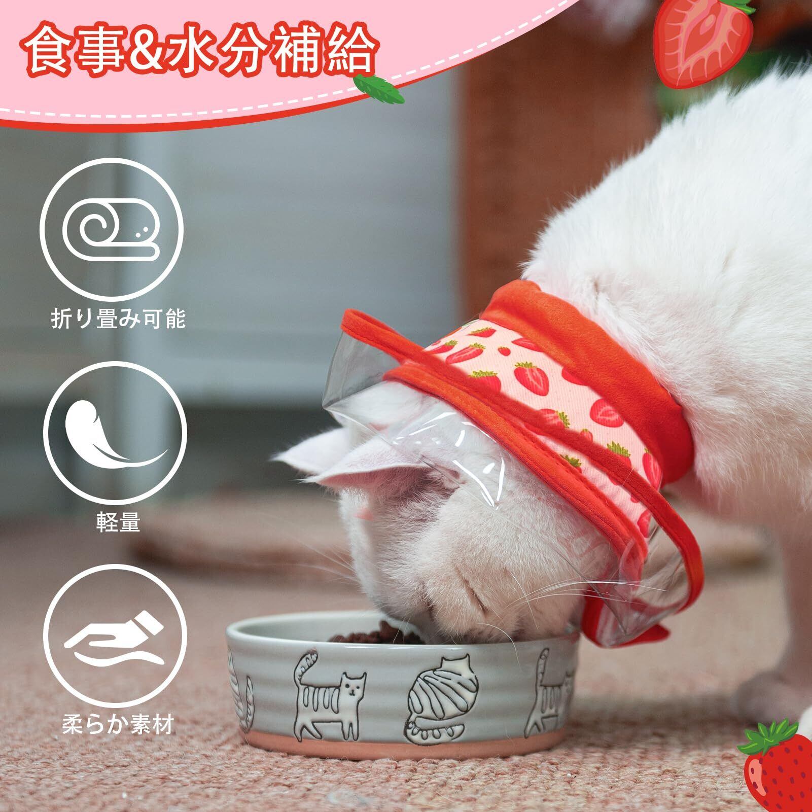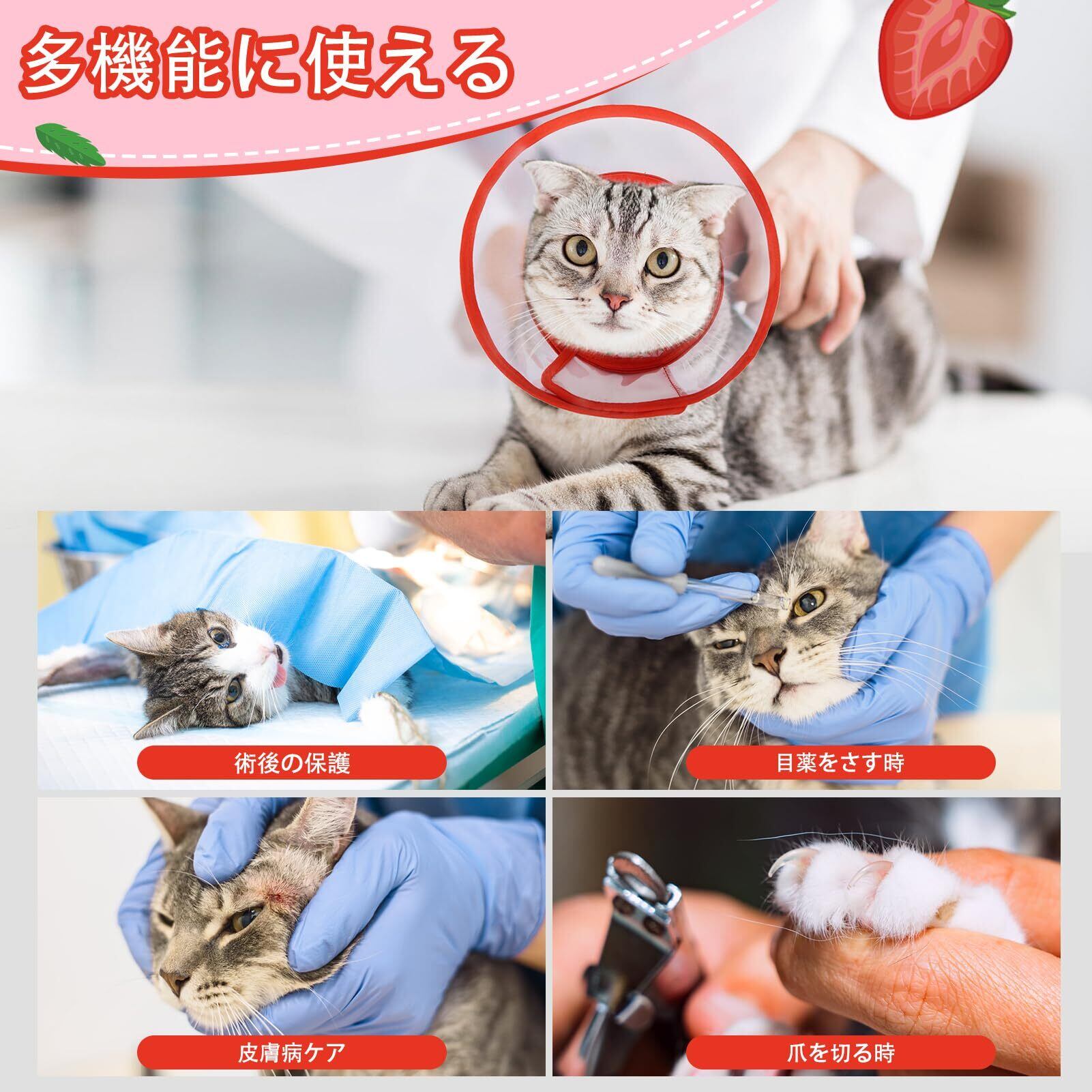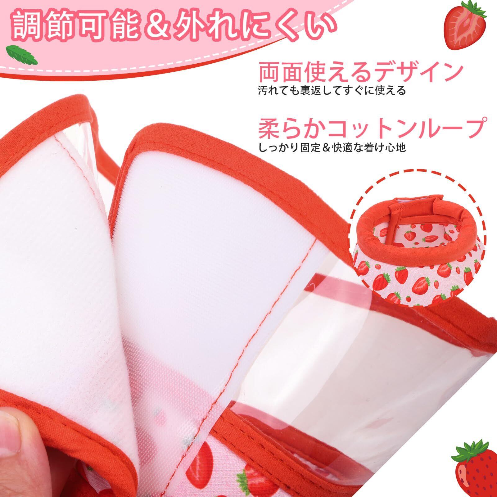 PUPTECK エリザベスカラー 犬猫用 軽量 防水 ソフト 引っ掻き防止 傷舐め防止 術後ケア 介護 去勢手術 傷口保護 マジックテープ式 サイズ調節可能 洗濯可能 やわらかい 可愛い 犬 猫(イチゴ,S)