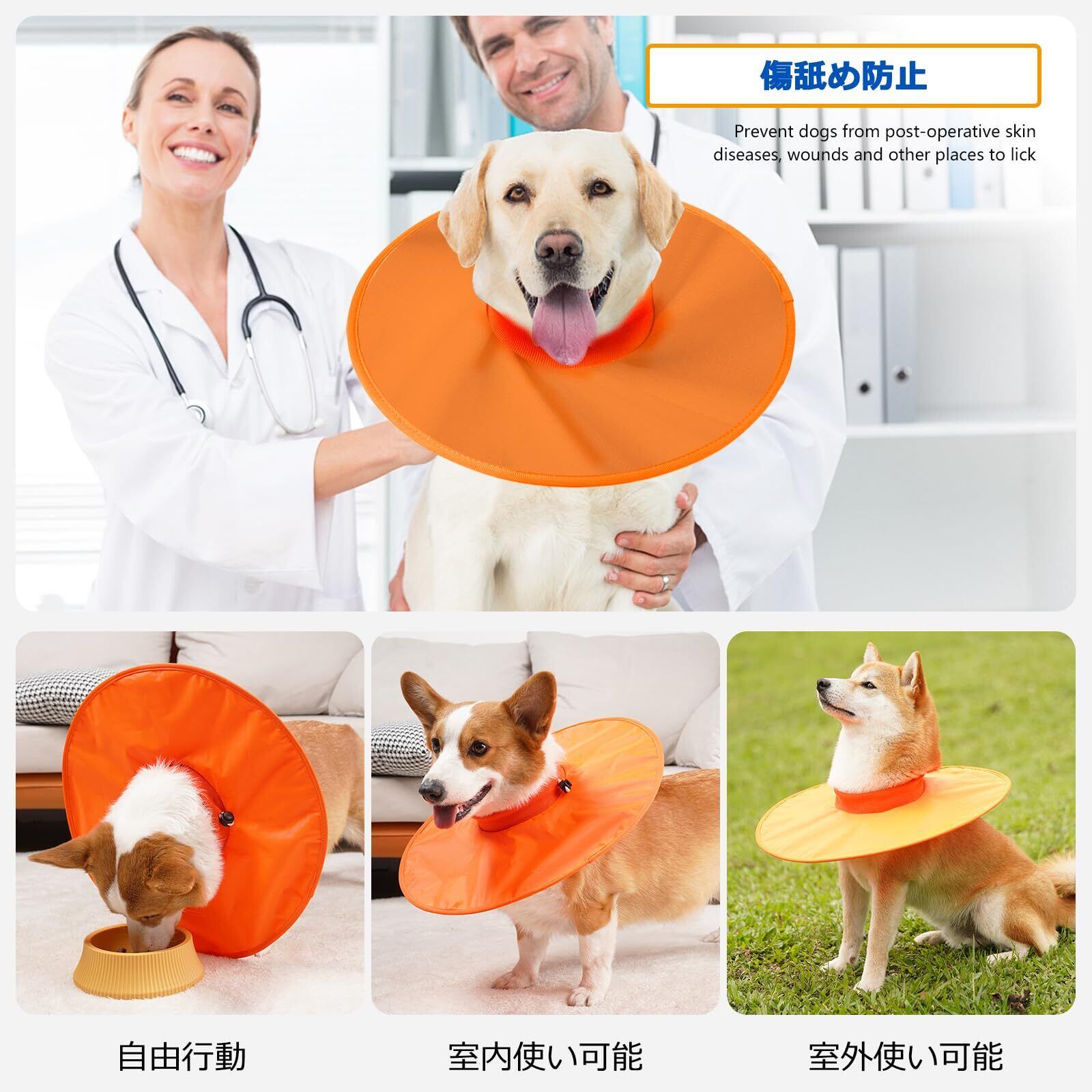 MEIAOJIA 犬用 回復首輪 エリザベスカラー エリザベスサークル 保護首輪 犬 中型犬 大型犬 ペット用品 ペット介護 術後ウェア 調整可能 視界を妨げない 傷舐め防止 引っ掻き防止 防水 オレンジ L