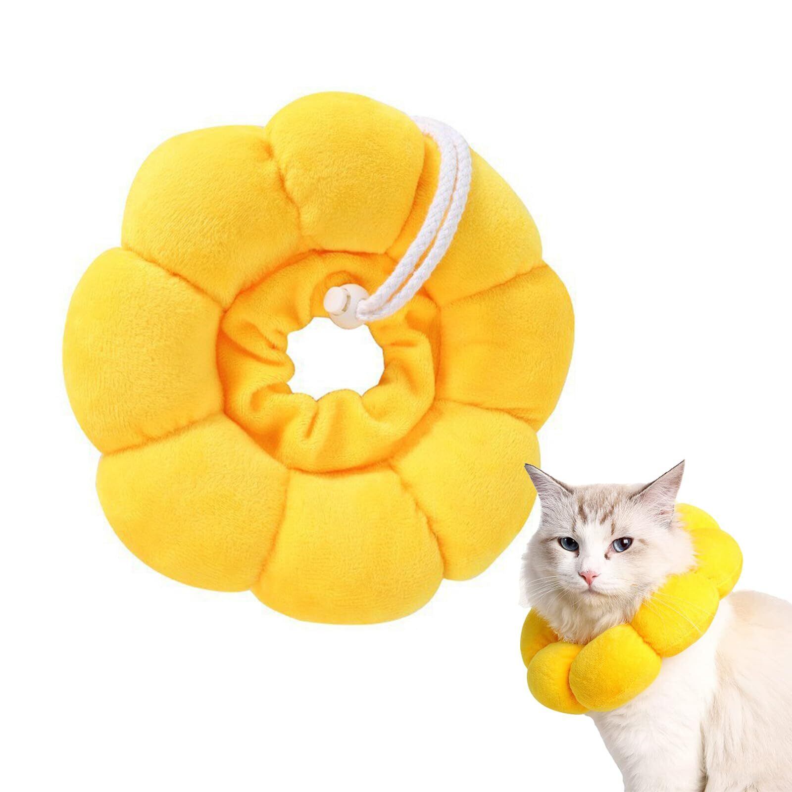 HanaHaul エリザベスカラー 小型犬用 猫用 ペット用品 かわいいひまわり型 S/M/L調整可能 軽量柔らかい 通気性 傷舐め防止 引っ掻き防止 術後ケア 手洗い洗濯 舐め防止 噛み防止 猫用 犬用 カラー PP綿生地 (イエロー, M)