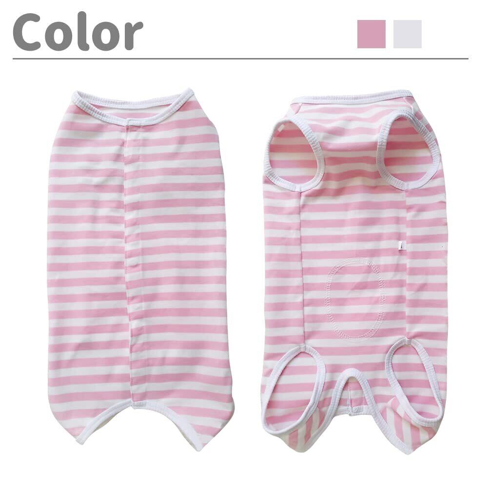 【数量限定】KUVEELA PET 術後服 犬 服 犬用品 術後ウェア 術後カバー服 エリザベスカラーの代わる 保護服 雄 雌兼用 避妊 離乳 傷口保護 皮膚病 通気 夏用 小型犬 中型犬(S、ピンクボーダー) | wakuwakuland