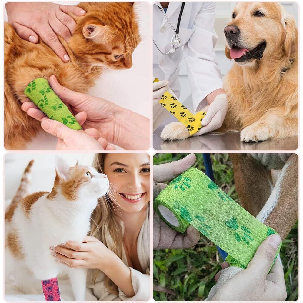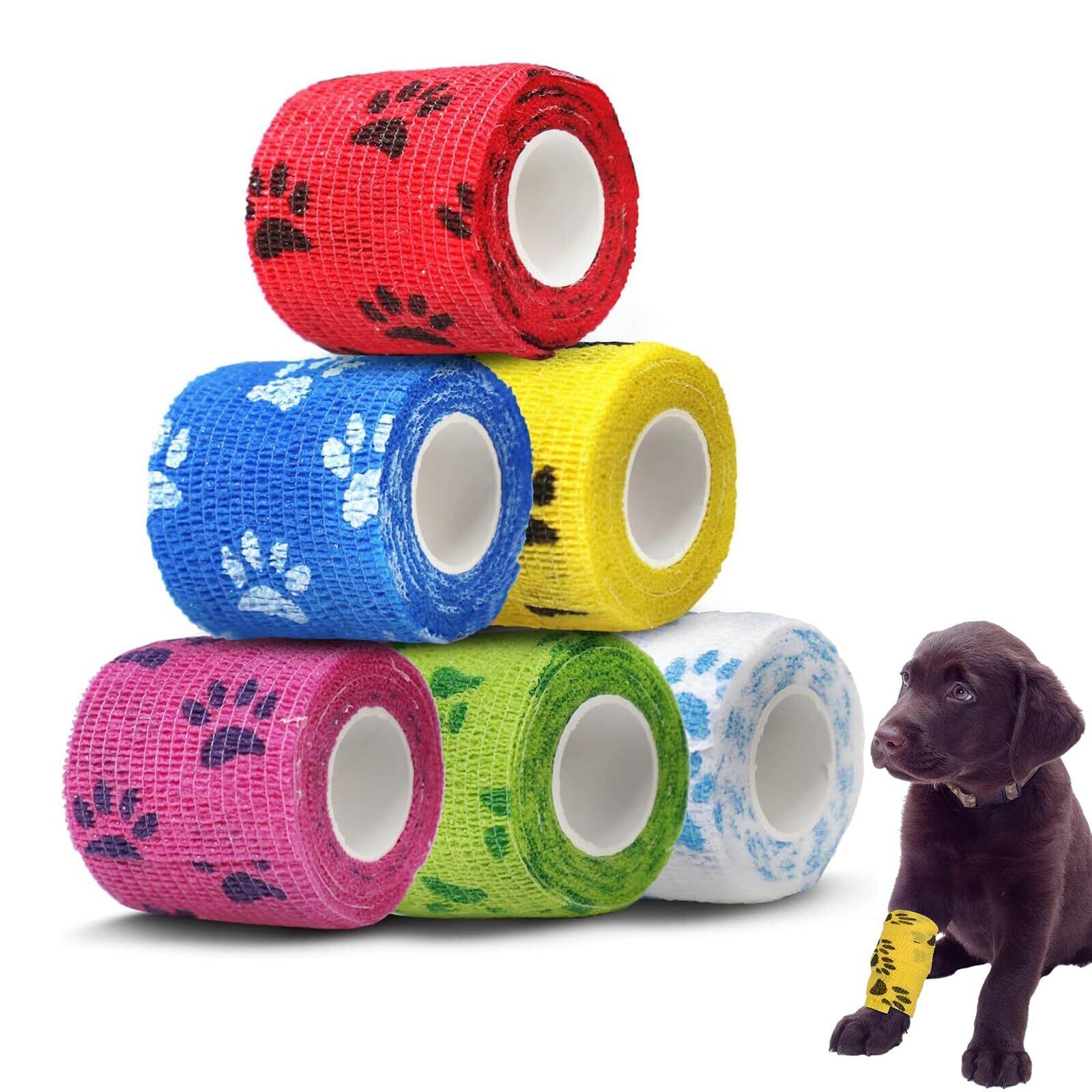 サムコス ペットフレックス 粘着包帯 5cm×4.5m 伸縮性あり 自着性 テーピング 通気性 多機能 傷舐め防止 犬 猫 ペット用 6点セット