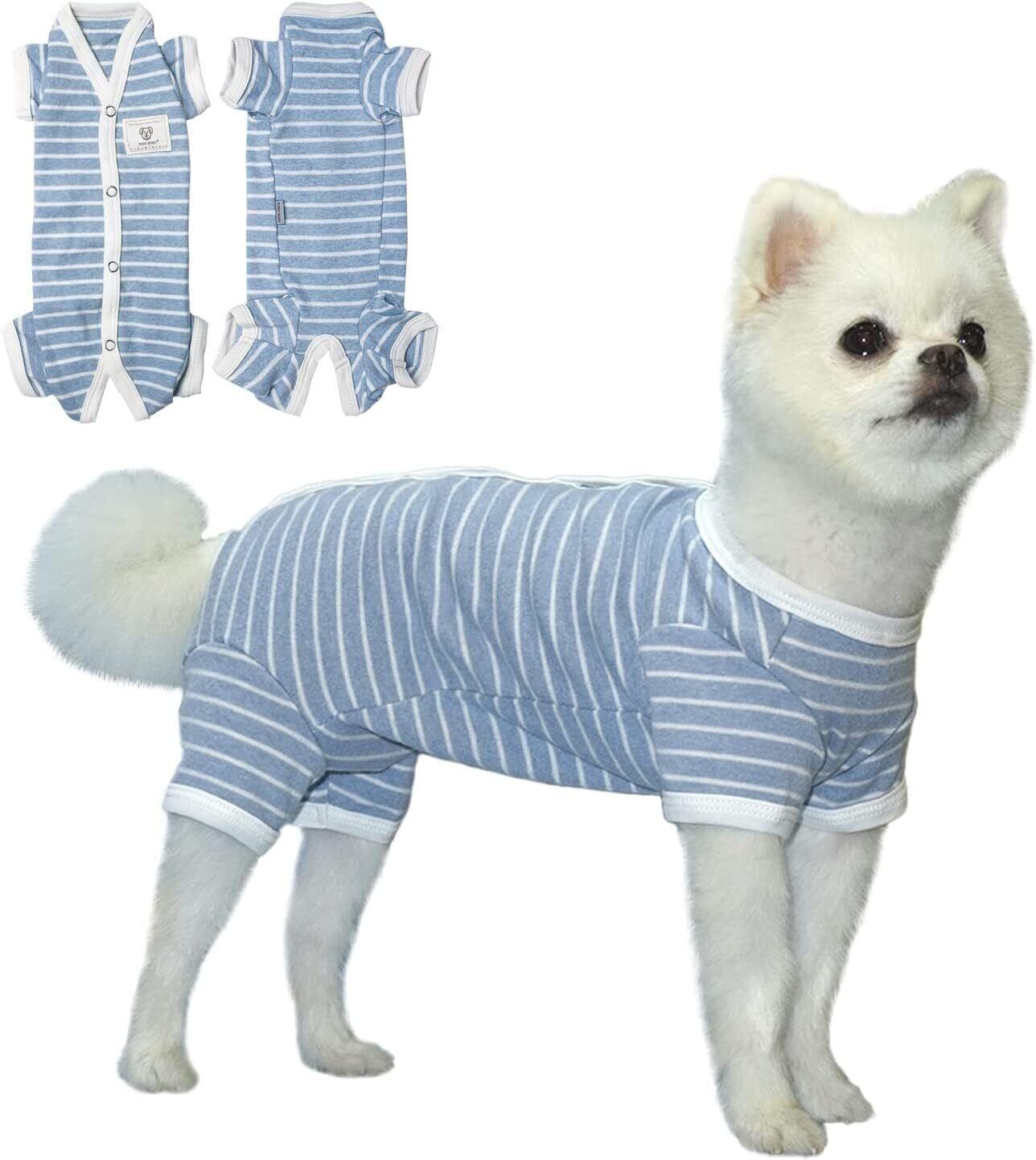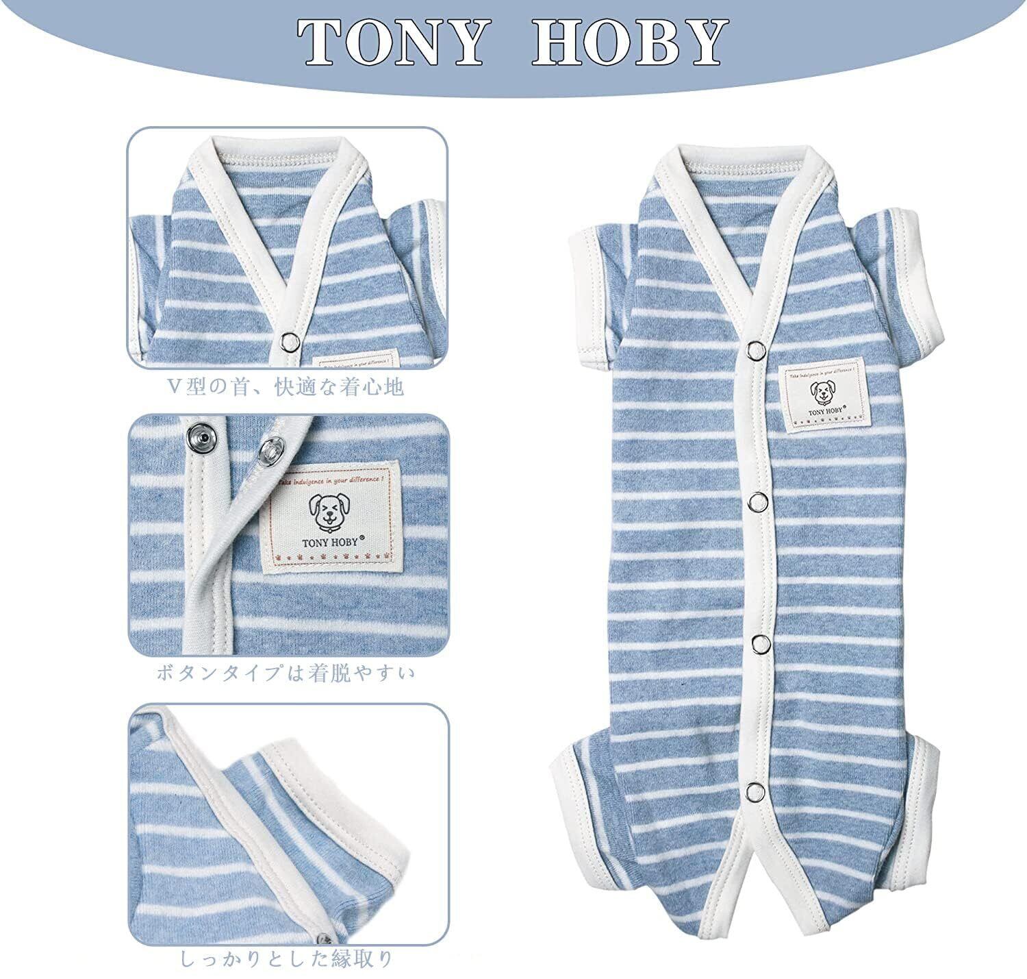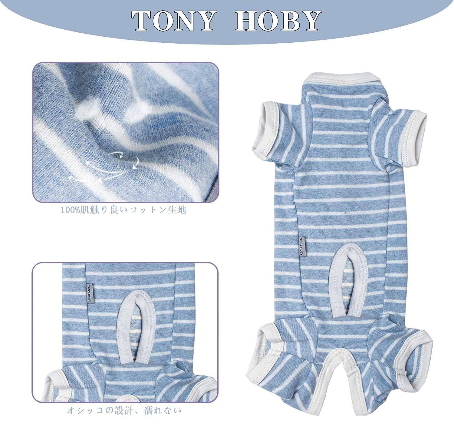 TONY HOBY 小型犬 術後服 男女別け 4足 オシッコ設計 犬用パジャマ 背中開き シンプル柄 100%コットン生地 小型犬術後ウエア 季節を問わず ブルー(男の子)