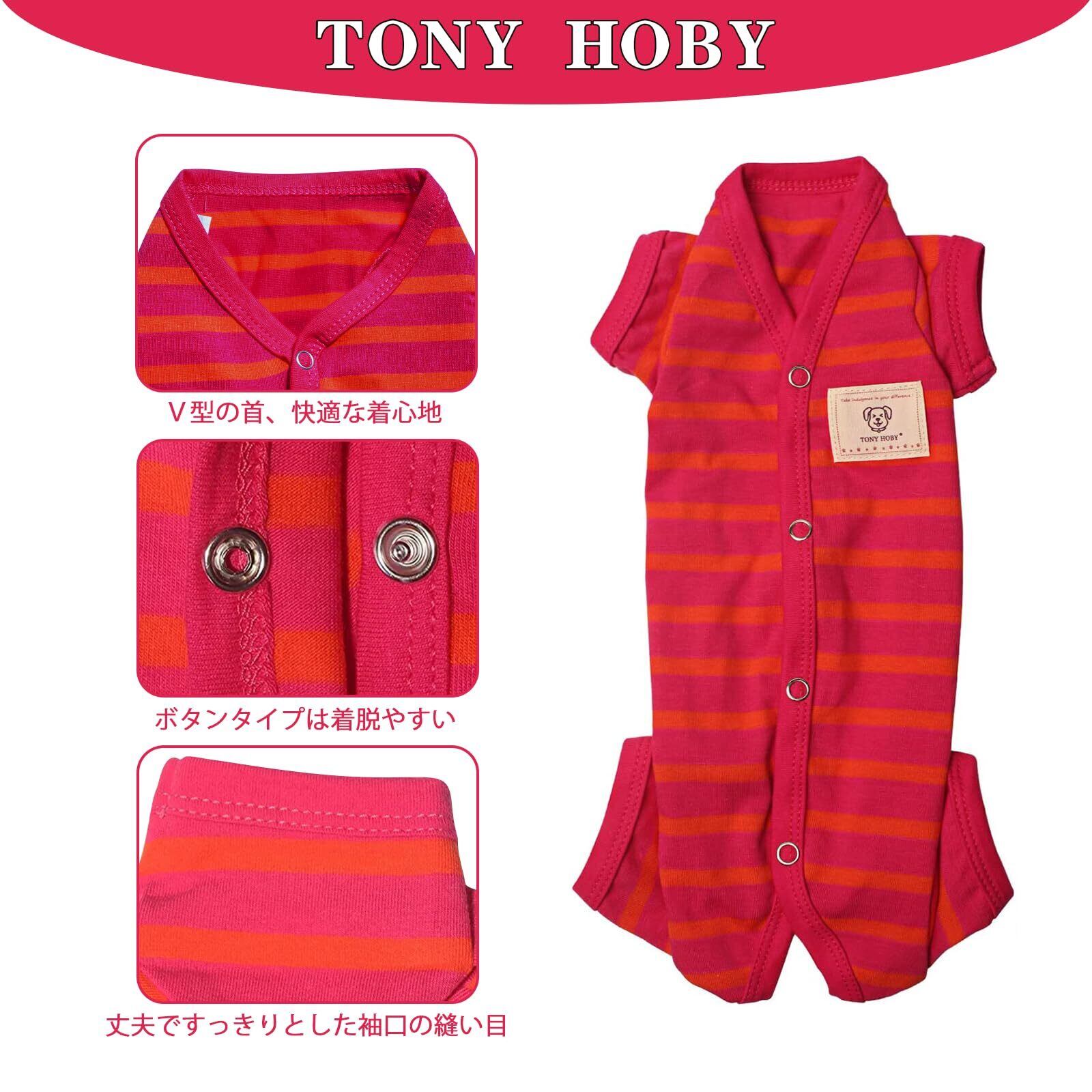 TONY HOBY 男女別け 犬用術後服 夏用 薄い犬のパジャマ 小型犬のロンパース ストライプ柄 ソフトコットン製 シンプル カジュアル ピンク-女の子