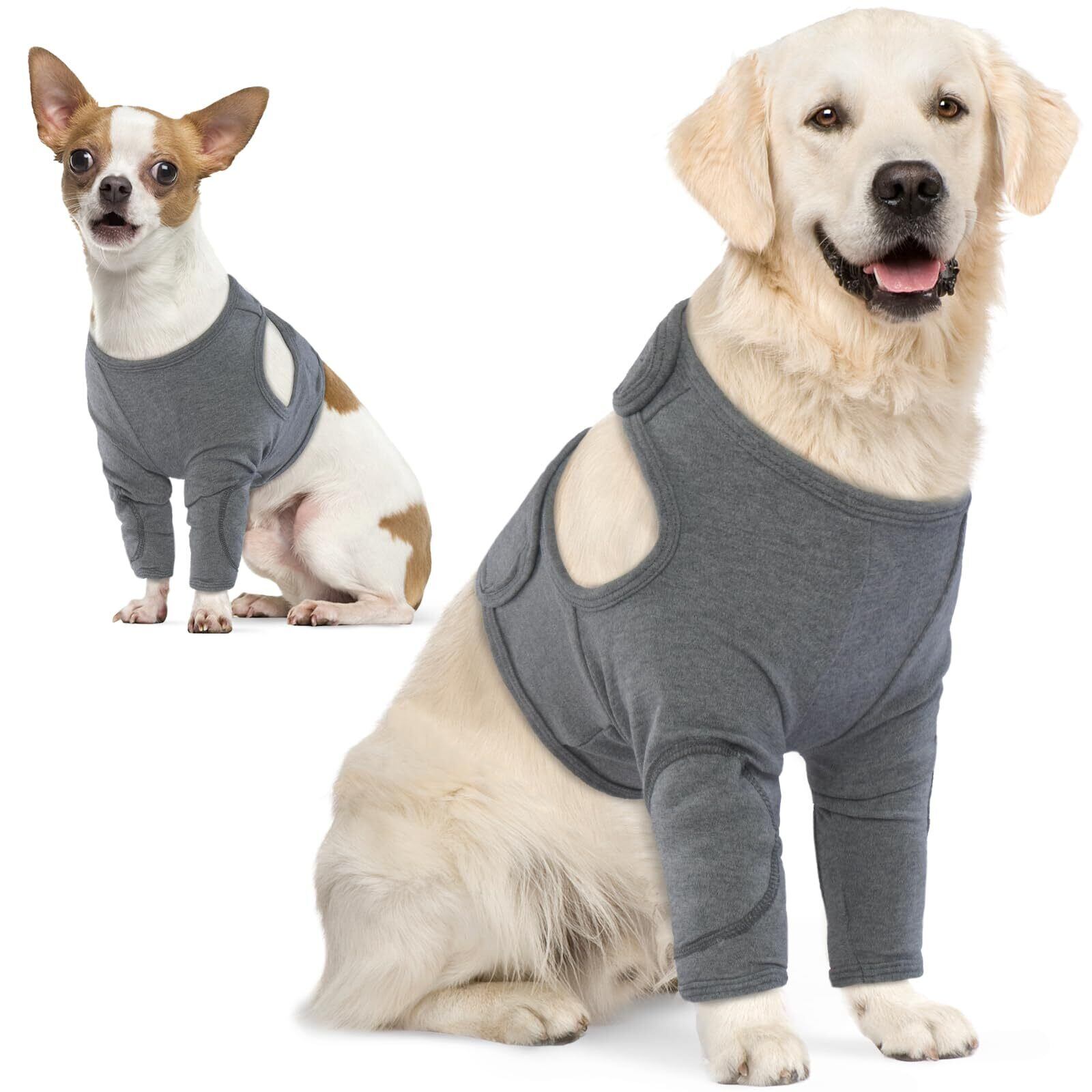 厚くなった関節パッド:リカバリーカバーの厚くなったパッドは、愛犬が床に横たわっている時の摩耗や損傷から愛犬の関節を保護します。 また、保護服は、愛犬が怪我を悪化させないために必要なサポートを提供し、同時に最適な快適性と保護性を提供します