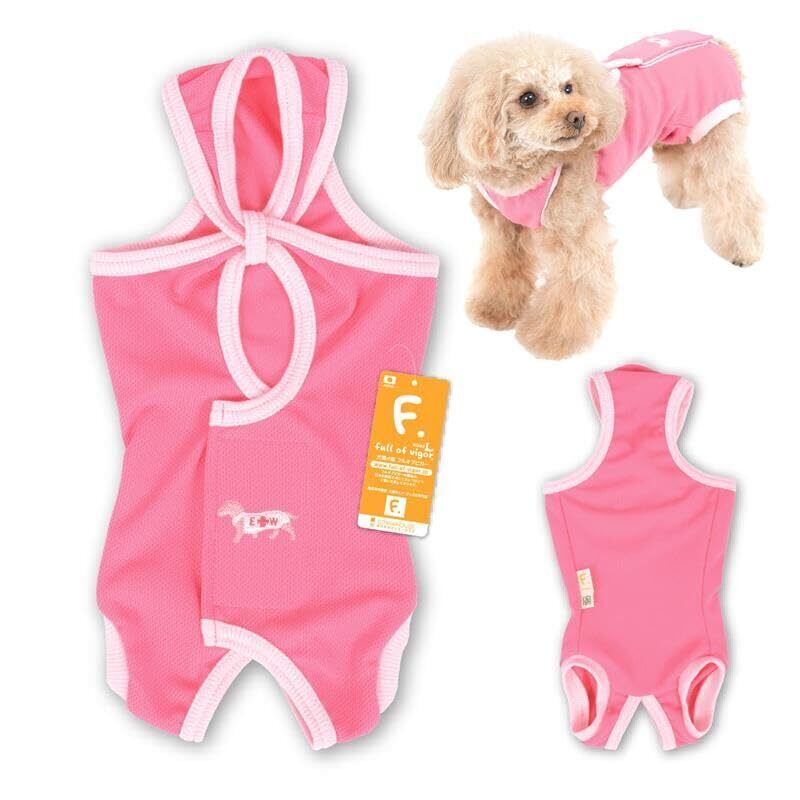 【在庫処分】小型犬 女の子用 傷口舐め対策 術後服 エリザベスウエア 術後ウエア 保護服 傷口保護 犬の服 フルオブビガー ピンク NML