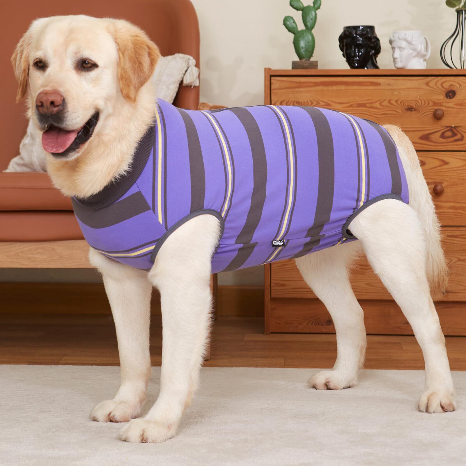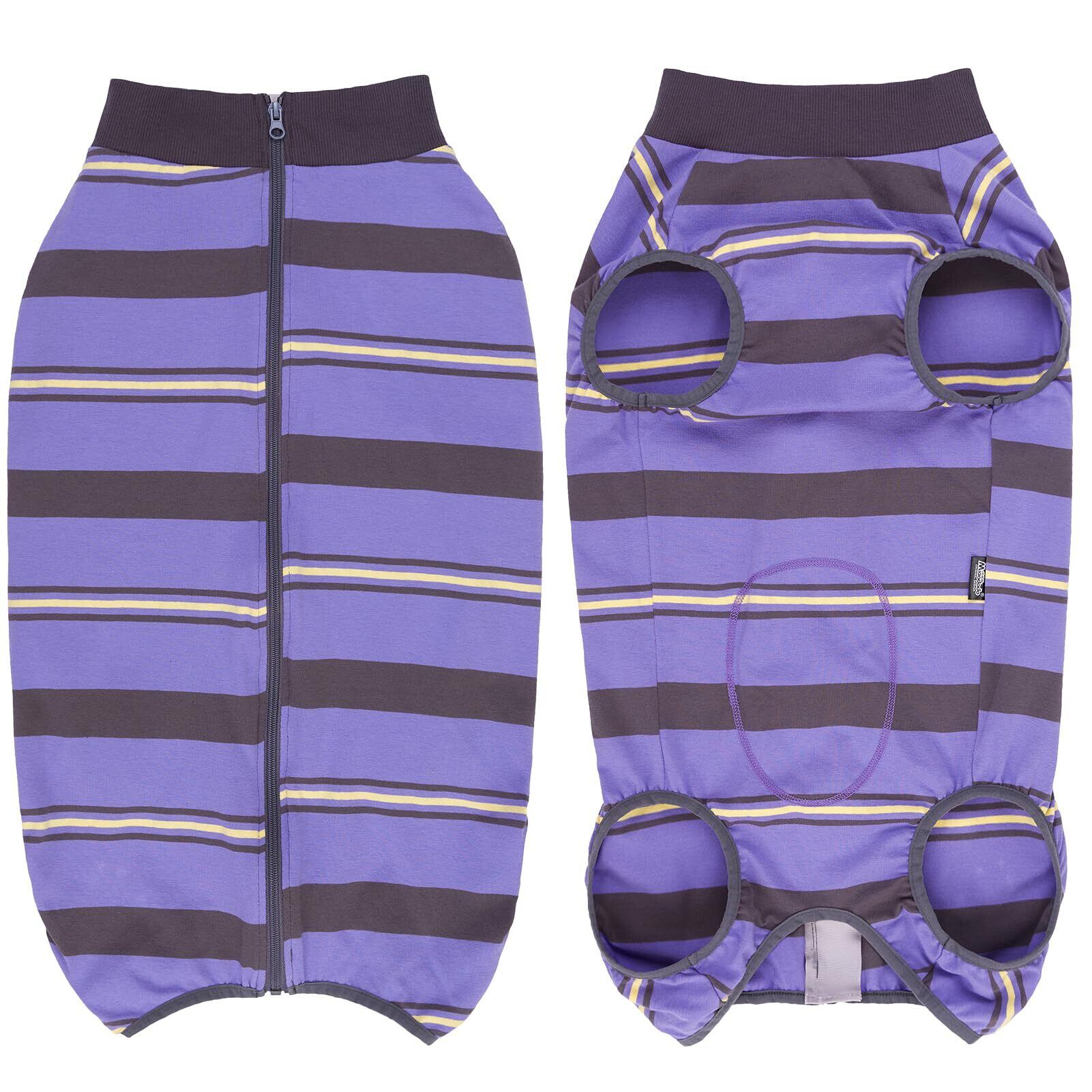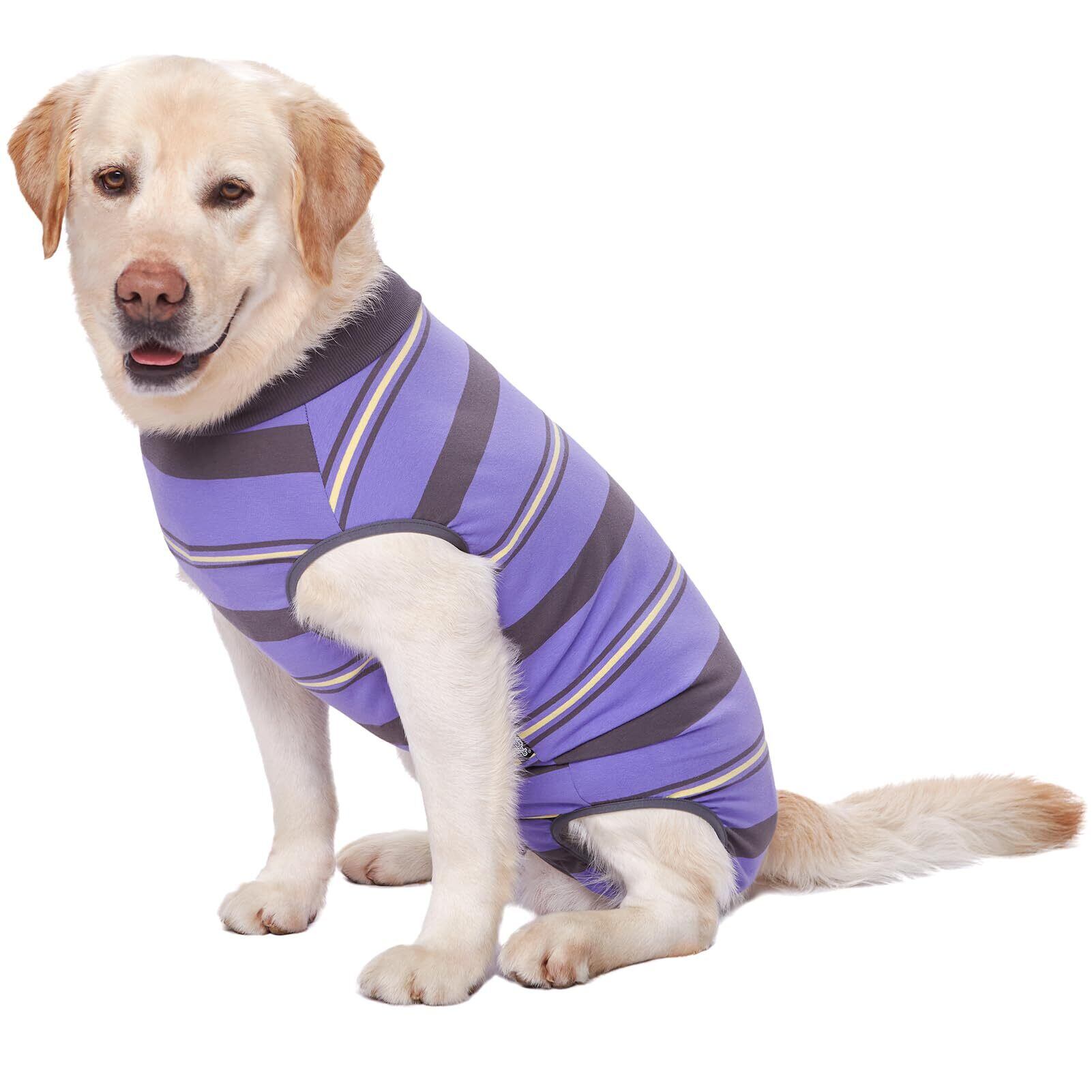 KUVEELA PET 大型犬 中型犬 術後服 メス オス 犬 手術後 服 犬用術後ウェア 介護服 ペット服 エリザベスカラー 避妊 離乳 傷口保護(パープルボーダー 3L)
