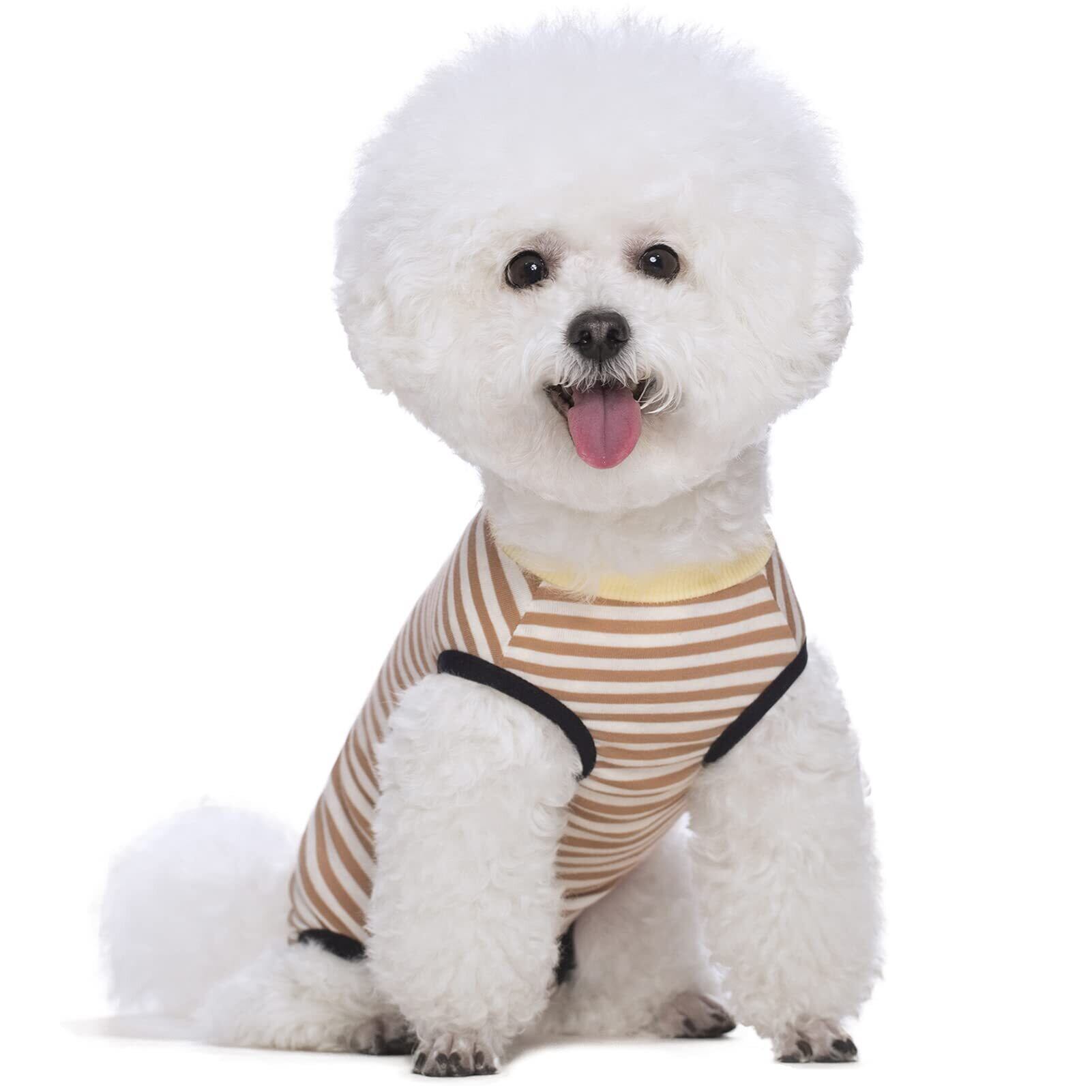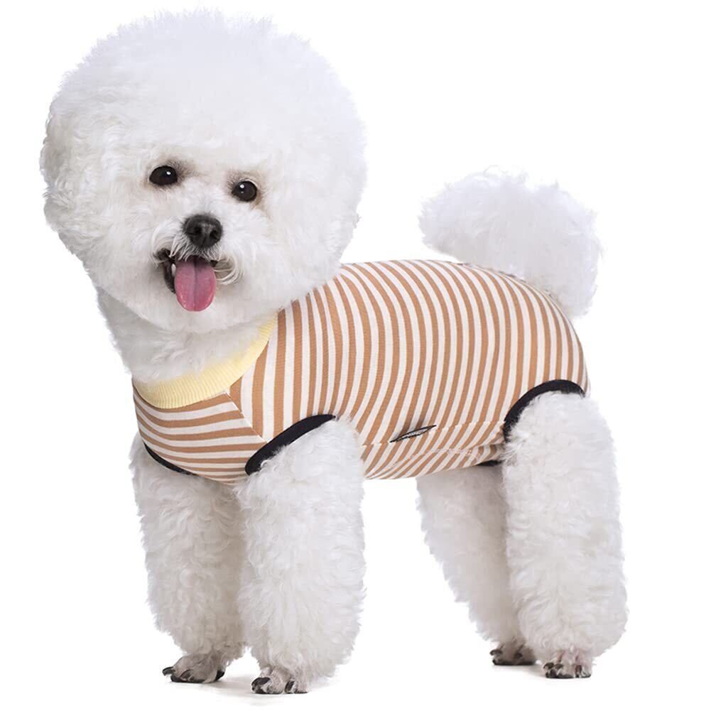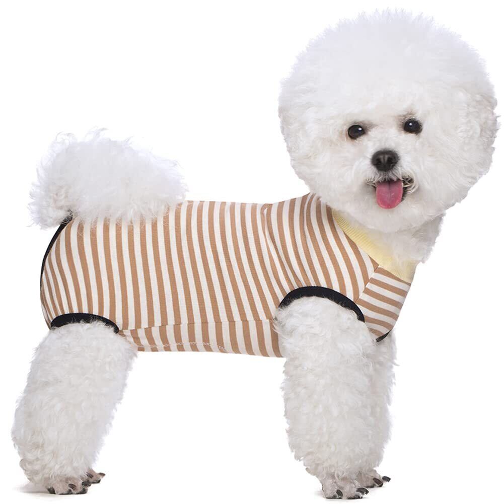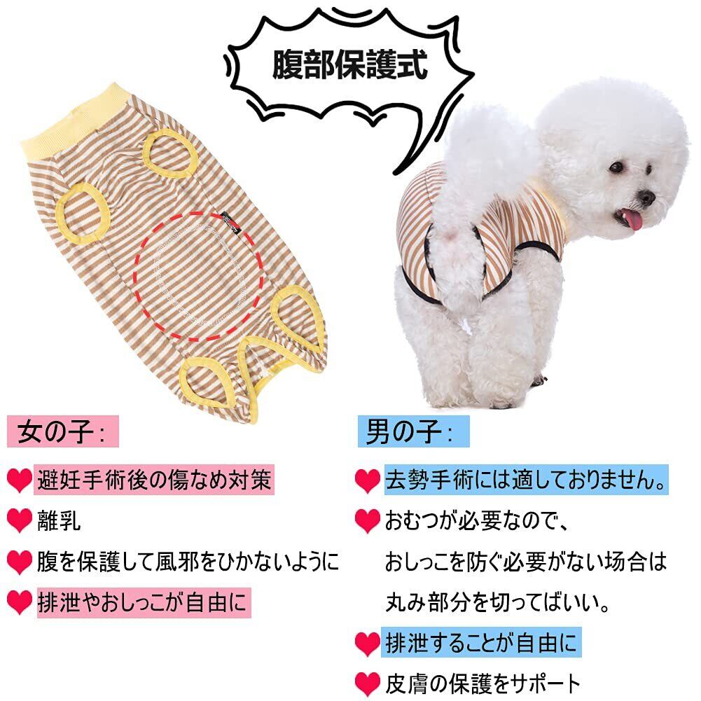 KUVEELA PET 犬用術後服 中小型犬服 術後服 術後ウェア 術後カバー服 保護服 エリザベスカラーに代わる オス メス兼用 避妊 離乳 傷口保護(オレンジストライプ、S)