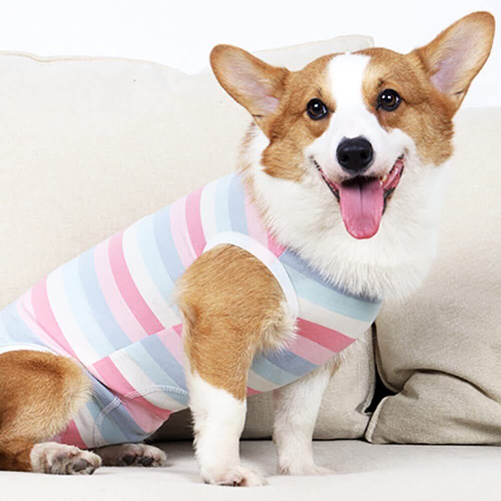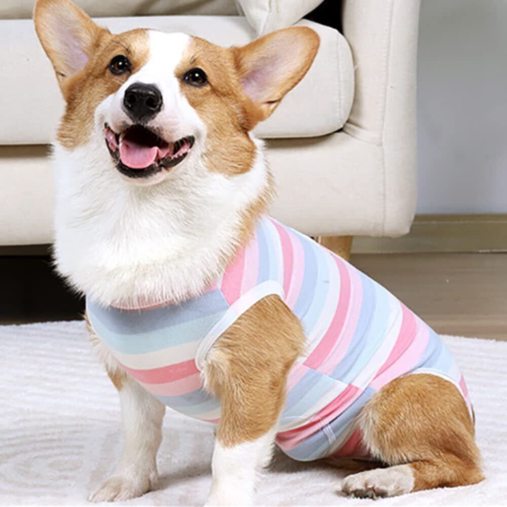 【幅広い用途】避妊手術や開腹手術、術後回復や皮膚病、オス去勢、乳腺腫瘍、妊娠後の离乳着、引っ掻き防止、手術後の傷口をなめたり噛んだりするのを防ぎ、お使い頂ける術後服です。また、術後服を犬に着せて、犬の手術後の不安やうつ病を軽減し、炎症、皮膚病などの問題の予防にも役立ちます。