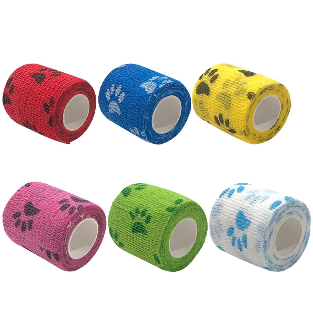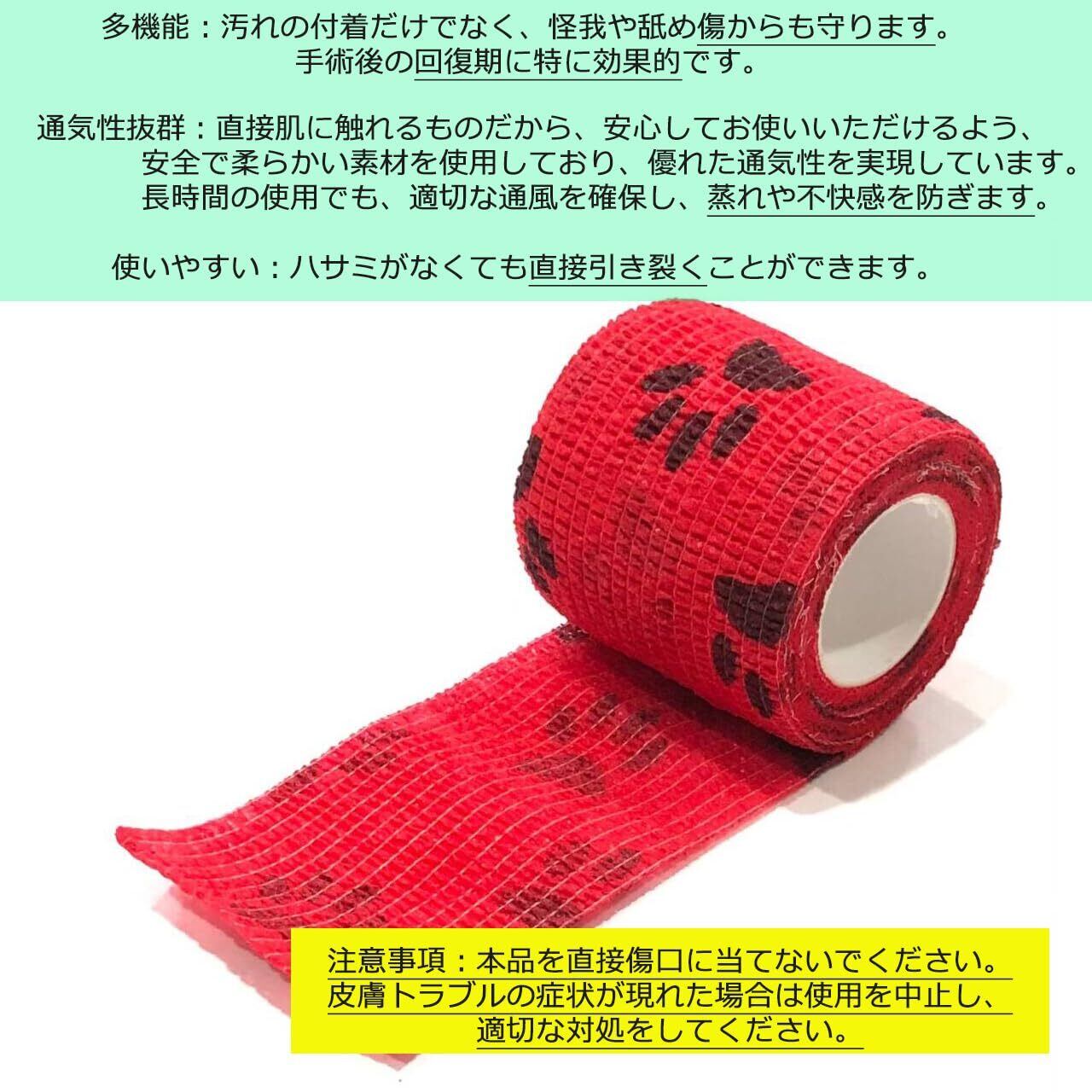 オーディオファン ペットフレックス 粘着包帯 5cm×4.5m 伸縮性あり 自着性 テーピング 通気性 多機能 傷舐め防止 犬 猫 ペット用 包帯 6点セット