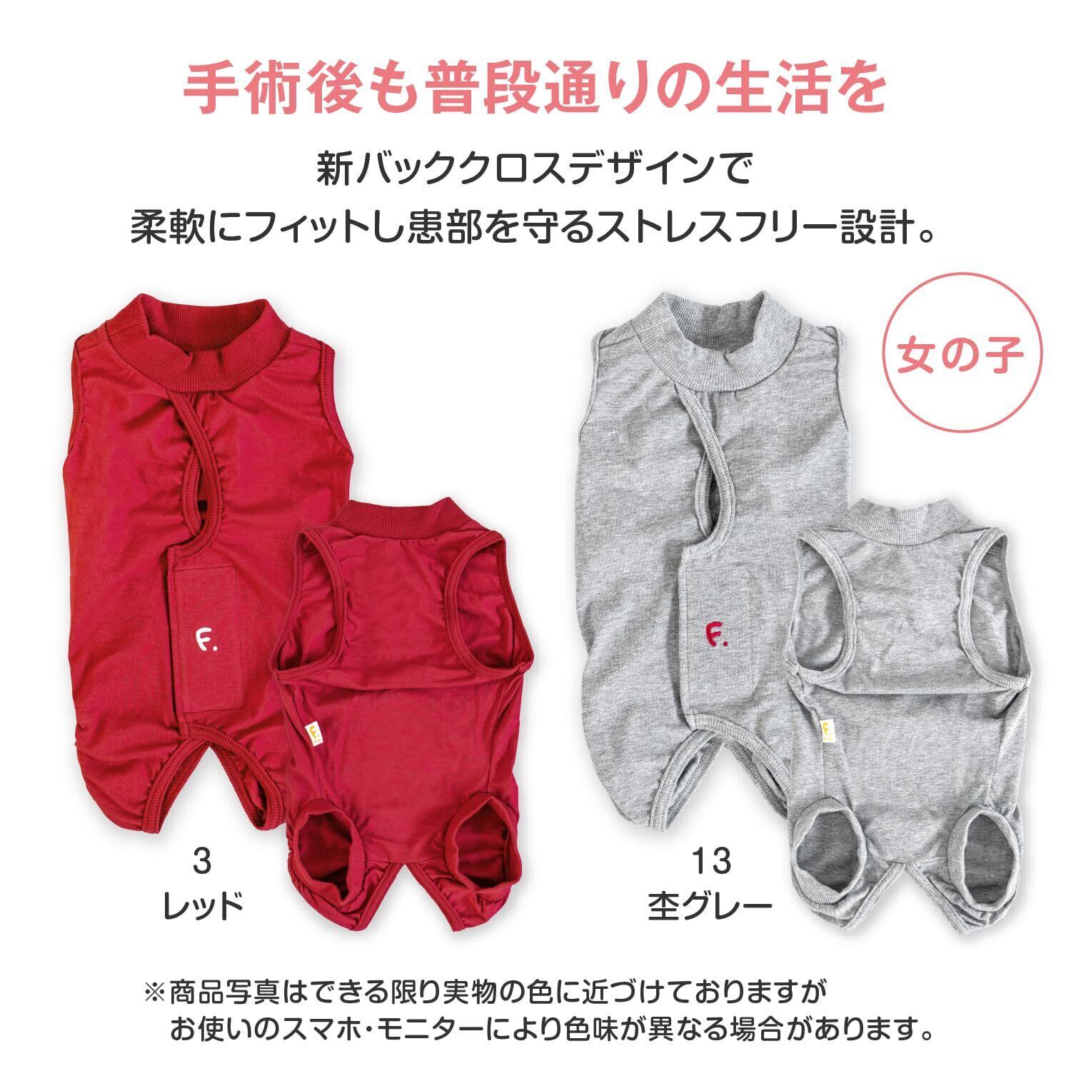 フレブル 傷口舐め対策 術後服 エリザベスウエア 女の子用 傷口保護 伸びる素材 犬の服 フルオブビガー 3/レッド FL