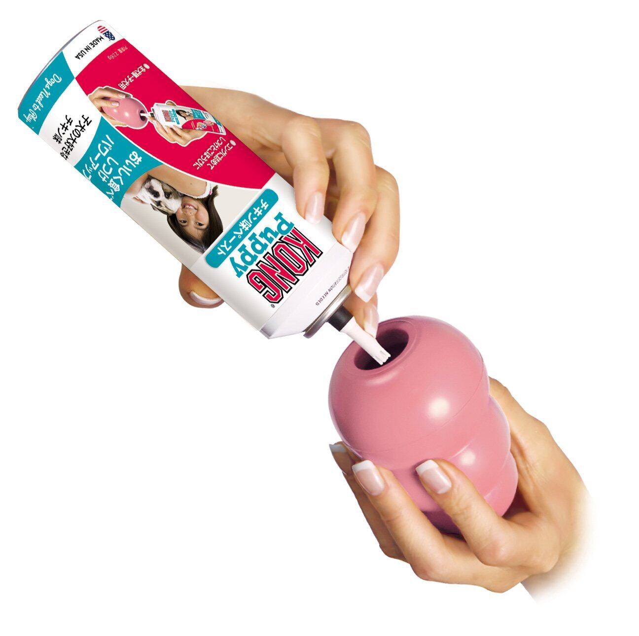 犬の自然なしつけや知育に役立つ、天然ゴム100%の丈夫でユニークな玩具。不規則な転がりやバウンド、かみ心地のよいユニークな形状。内側が空洞になっており、コング独自の凹凸に専用ペーストやフードを入れることで、犬が中身を取り出そうと夢中になります。子犬用に開発された乳歯に優しい固さのコングです。