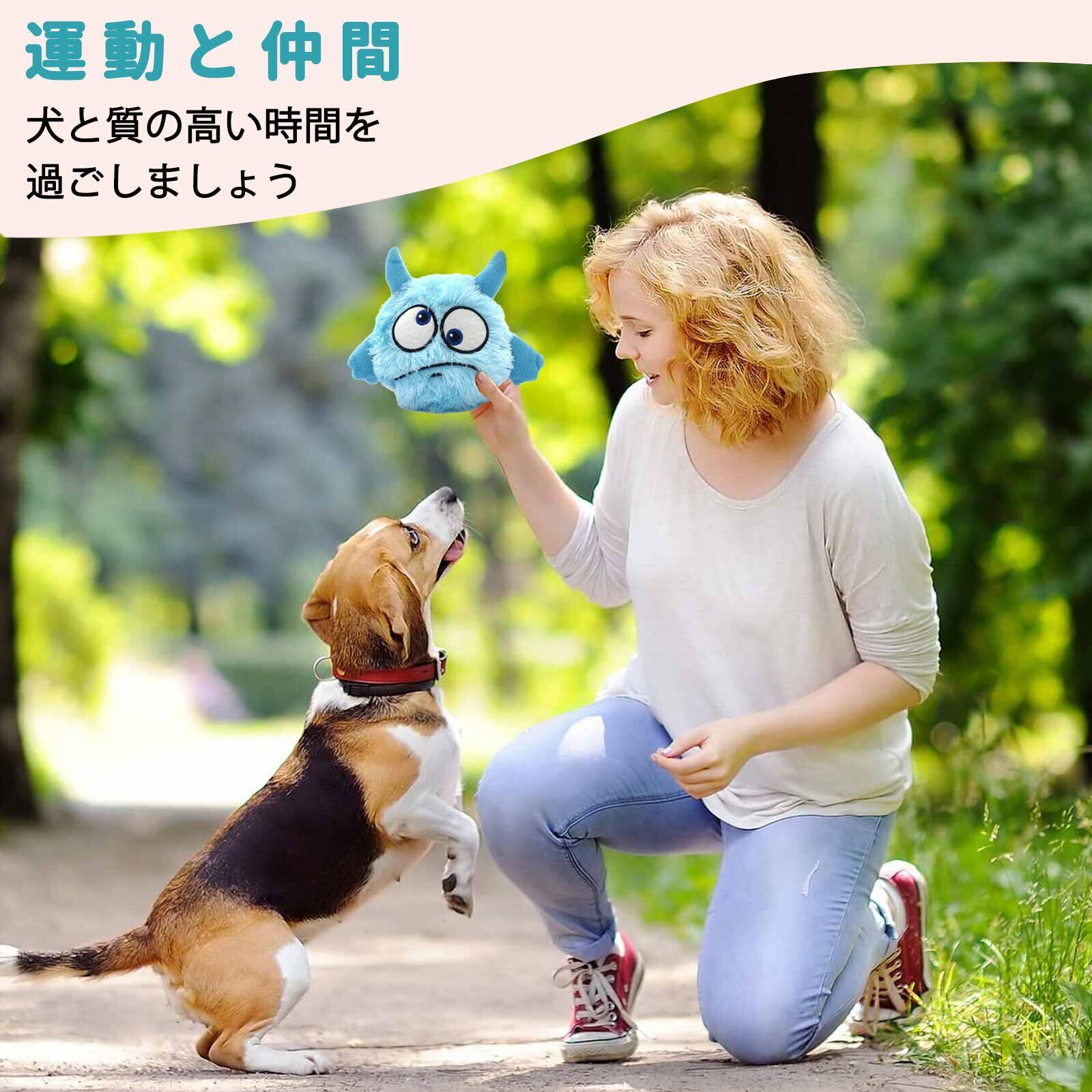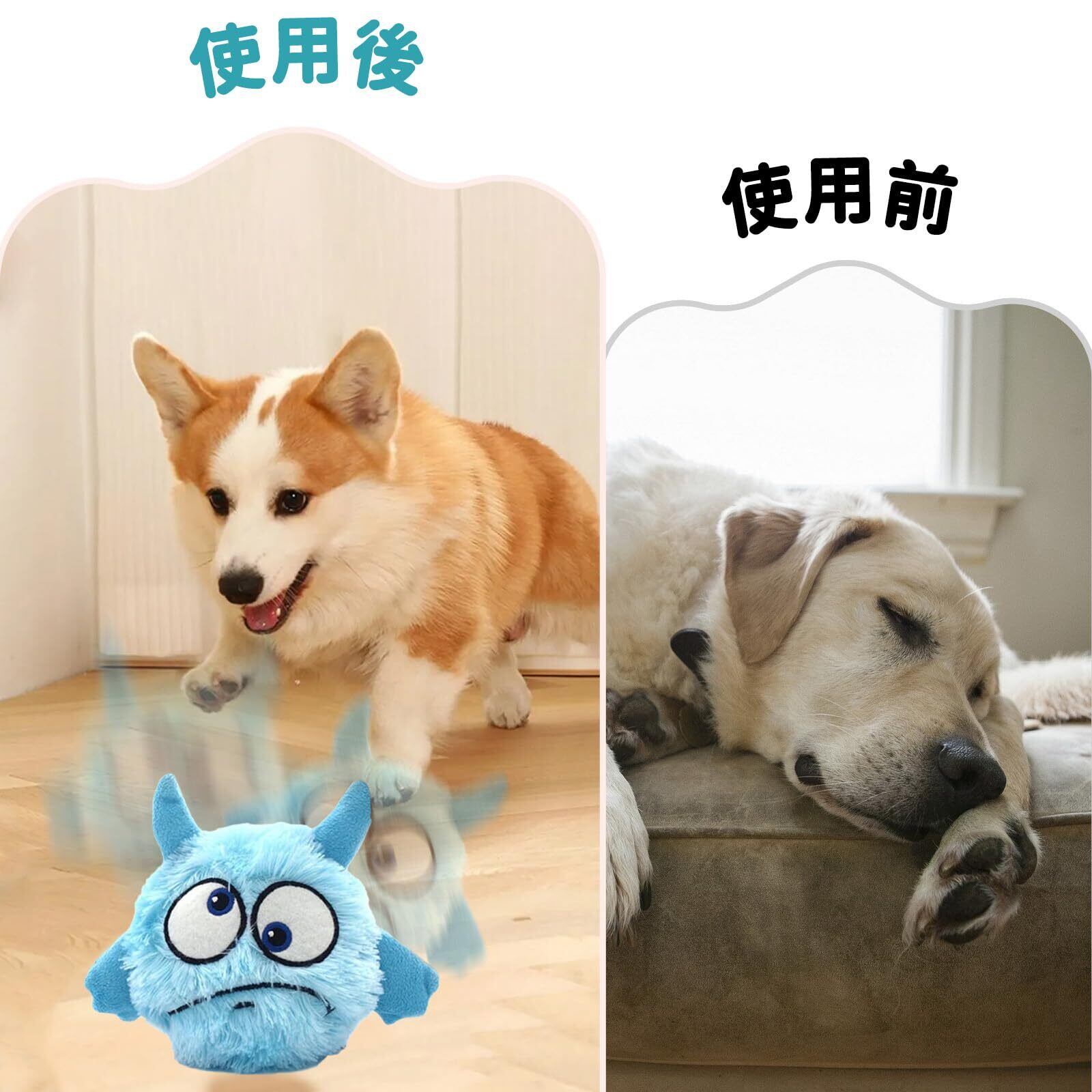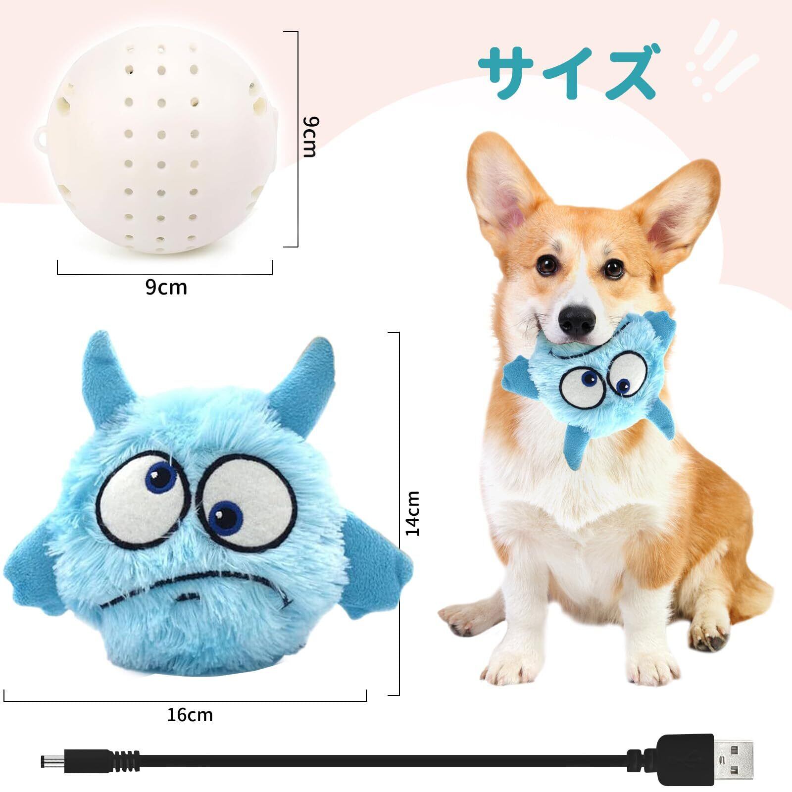 CANPLUS 犬 ボール おもちゃ 自動 動くおもちゃ 動くボール 電動ボール ぬいぐるみ 知育玩具 柔らか 弾性犬ボール 防水 無毒 お手入れ簡単 USB充電 運動不足 トレーニング 不安分離症解消 ストレス解消 (ブルー-モンスター)