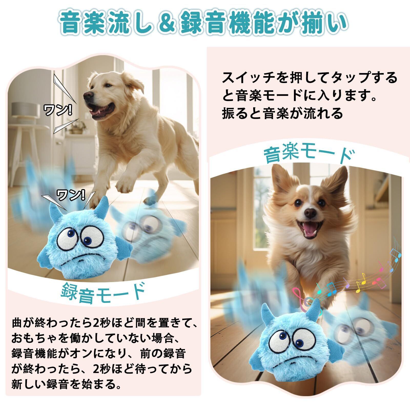 【音楽流し/録音/バウンス機能揃い】3-in-1の多機能な犬のおもちゃは、飼い主さんがいない時に犬を楽しませます。この犬 動くおもちゃは音楽に合わせて動き、バウンスし、振動し、犬の精神的・身体的な刺激を与え、アクティブにさせ、追いかけたり吠えたりして、退屈な生活に楽しさをもたらします。