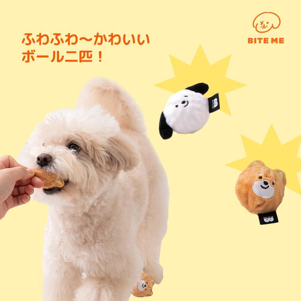 大人気のボールがリニューアルしました! ボール遊びに本気なワンちゃんたち注目してください! ふわふわ~かわいいボール二匹! すぐにおもちゃを壊してしまうワンちゃんでも安心して遊べるように綿を使用せずに作りました。 一口サイズの大きさなので、思いっきり投げて楽しく遊ぶことができます!