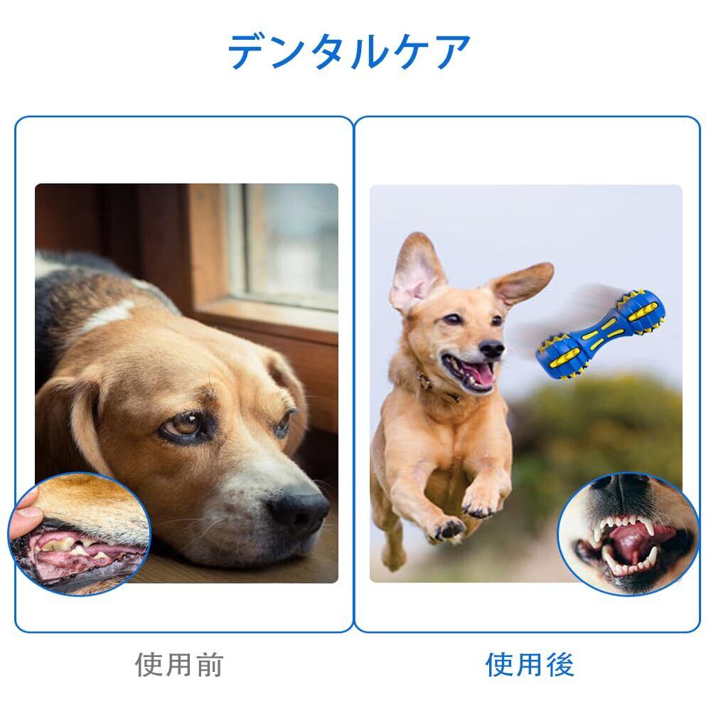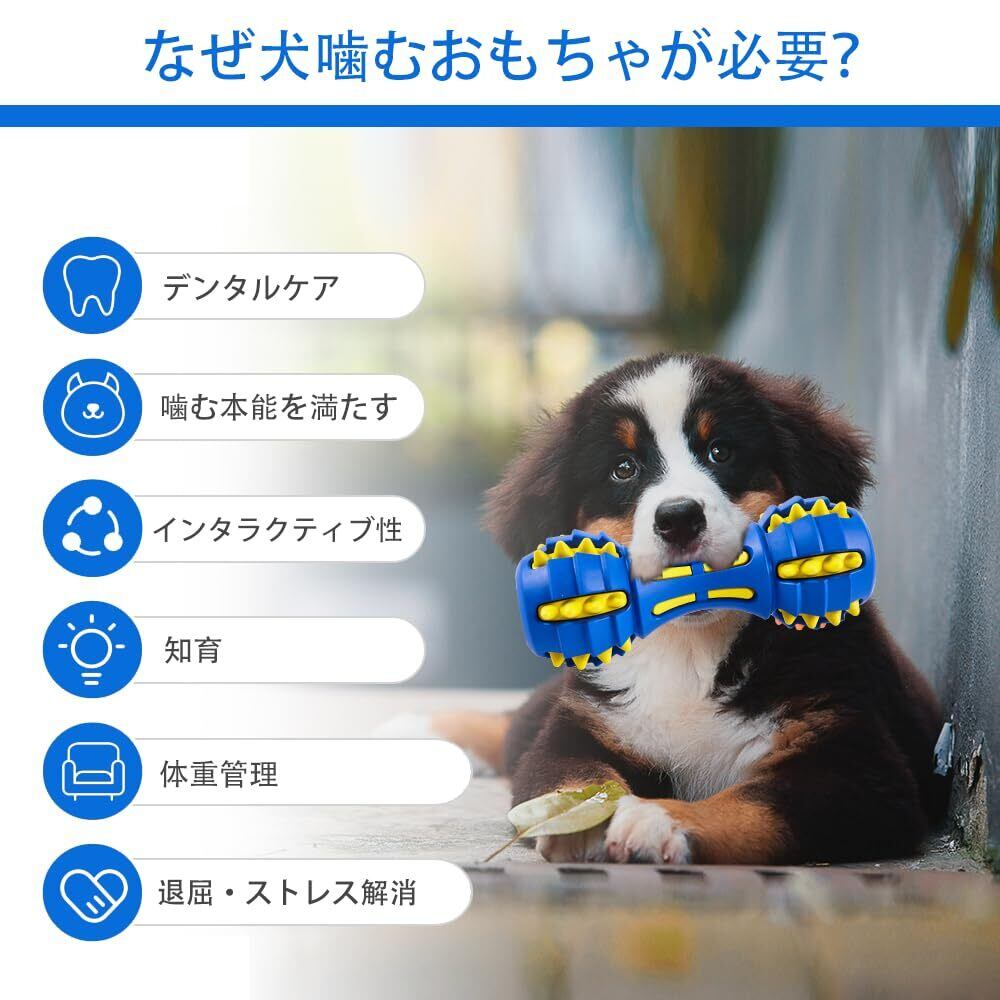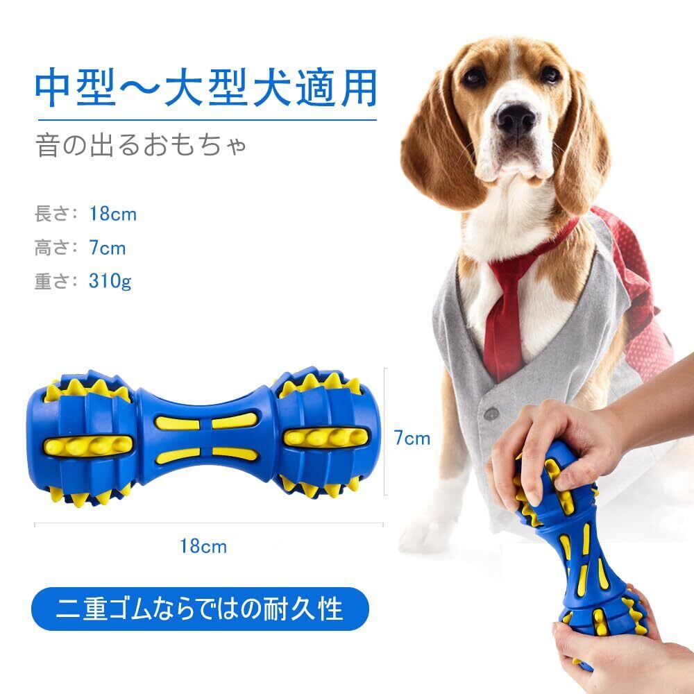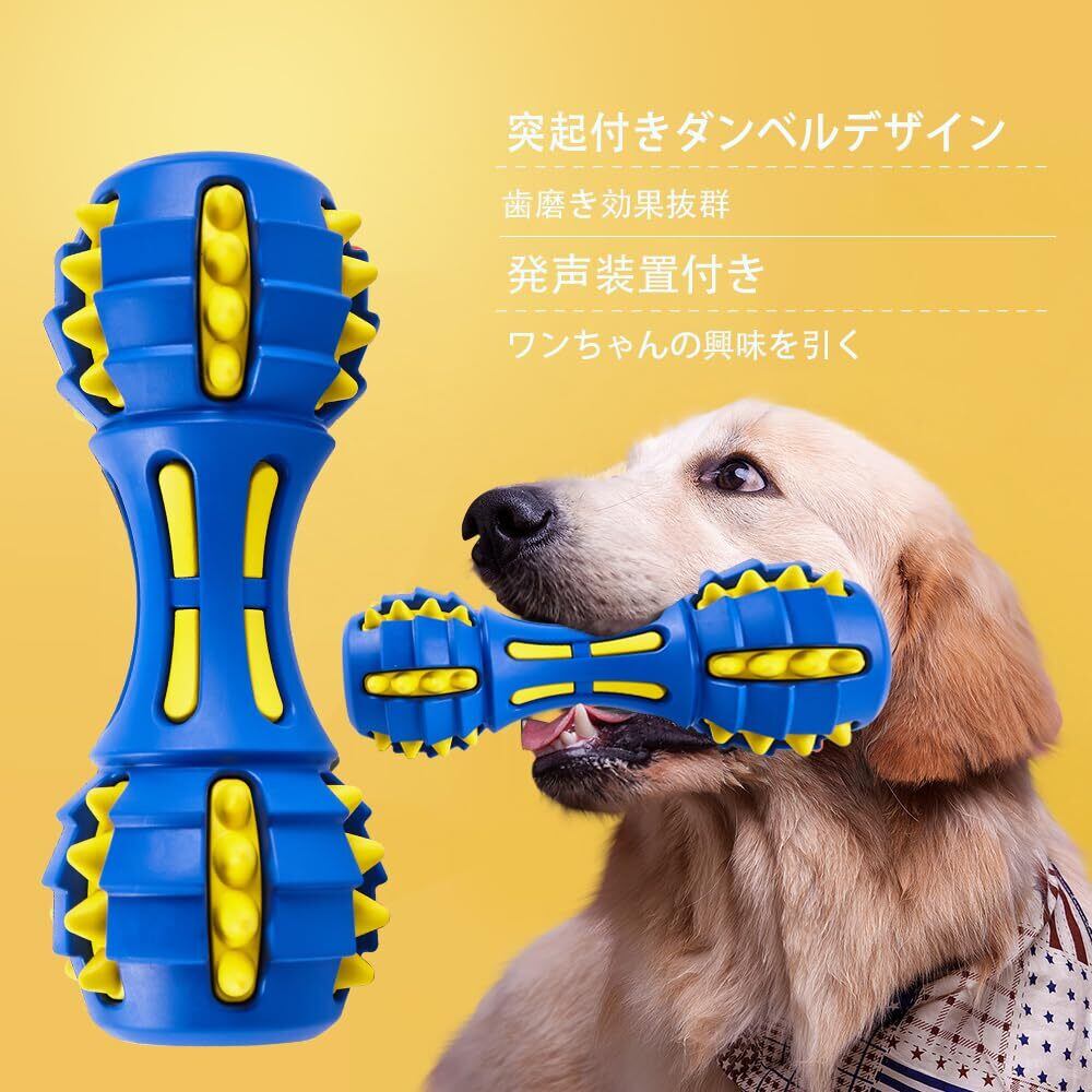 AUSCAT 犬 おもちゃ 噛む 歯磨き デンタルトイ 頑丈 音 犬のおもちゃ 大型犬 中型犬 ダンベル 青黄