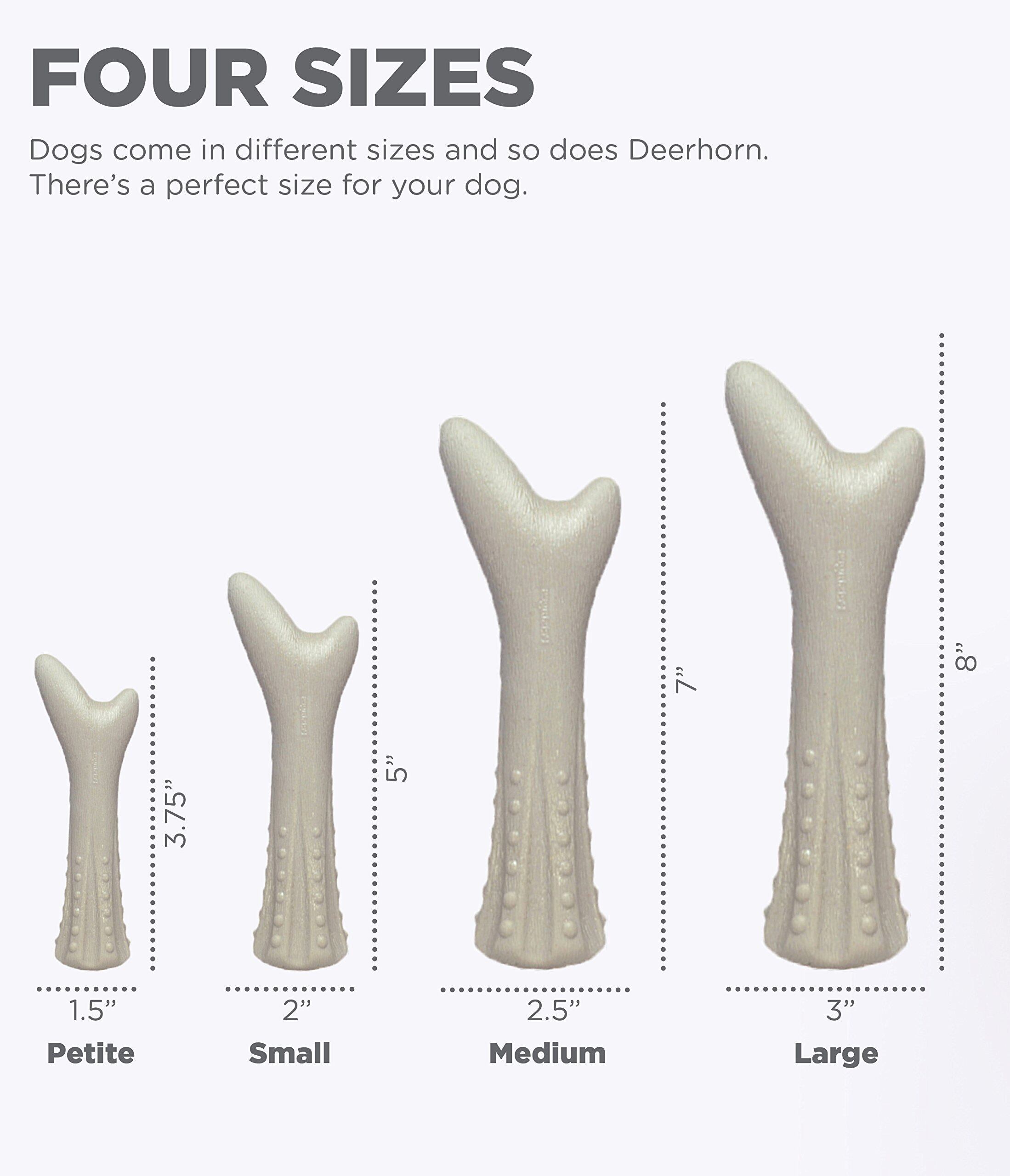 【商品説明】ワンちゃんの興味を長く惹きつけるとして、米国ではおもちゃとして与えることがポピュラーな鹿の角。ただし突起やささくれで、口の中を傷つけてしまうことも。ヘラジカの角とナイロンを混ぜ合わせて作ったディアー・ホーンは噛んで遊んでも鹿の角のように突起ができたり、割けたりしにくく、安心して遊ばせてあげることができます。さらに牛骨粉を追加することで、興味を二重に惹きつける革新的なチュートイです。【原材料】原材料は全て米国より調達し、中国で成型しています。【安全性】ベビー用品に求められるおもちゃの重金属8元素(鉛・カドミウムなど)の溶出試験を日本国内の外部試験機関で行い基準を満たしているので、安心して愛犬に与えることができます。【対象犬種サイズ】小型犬から中型犬