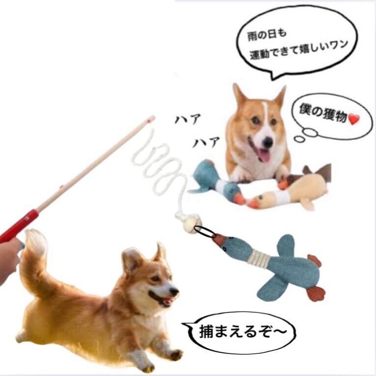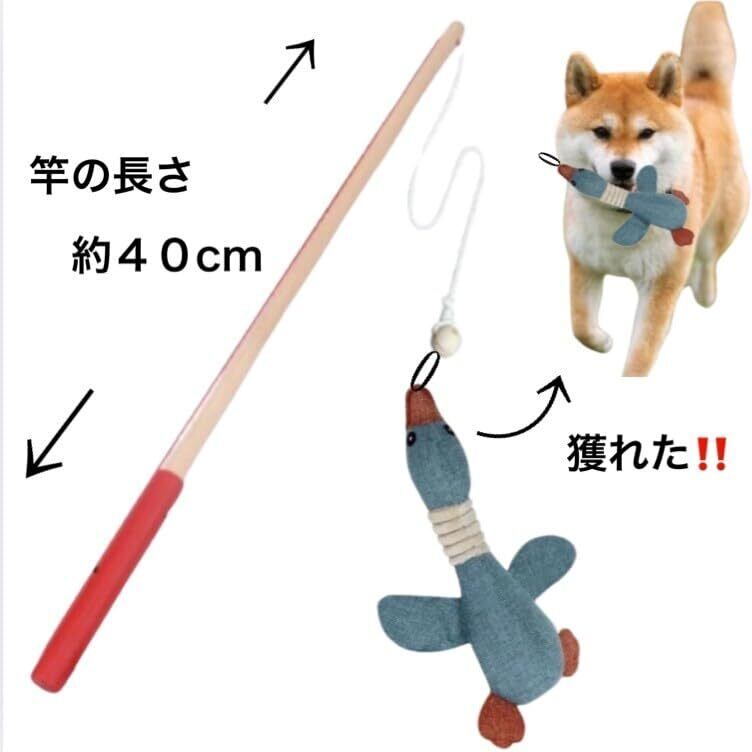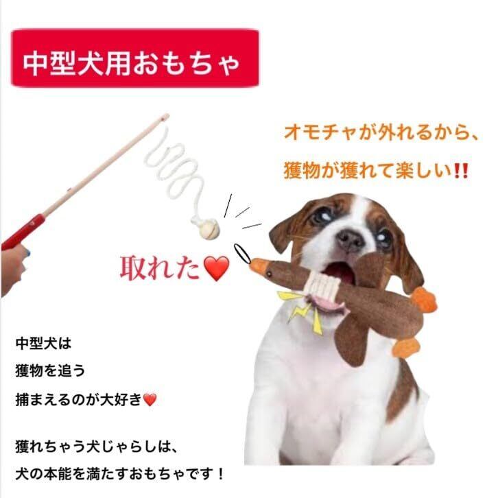 【楽しみながら愛犬の運動量を確保できる!いままでなかったおもちゃ】 この犬じゃらしは、振り回しても外れないのに、犬が咥えた弾みの力でおもちゃが外れます!!おもちゃを獲りたい、狩りたい、捕まえたい!ワクワクしながら狩猟本能を満たし、達成感を感じられるおもちゃです。 飼い主さんの指示に従う健気なワンコたち。 遊ぶ時は思いっきり本能を満たす遊びをしてあげたい!!そんな飼い主さまへお勧めします。 中型犬・小型犬・15キロ以下(目安)の室内犬に適した犬じゃらしです。取り外し可能なので何度でも遊びが楽しめます! 獲物を追うことが楽しい !! 野生の犬にとって探索欲を駆り立てられるのが「獲物」だったわけで、獲物を探す→獲物を追う→とどめを刺す、この3つの工程が犬にとっては楽しいのです。 人間と暮らす犬は、飼い主に毎日餌を与えられるため、獲物を追って捕食する必要がありません。しかし、犬には「追跡本能」と「捕食本能」があるため、おもちゃやボール、スリッパ、クッションなどを咥えて離さない、振り回すなどの行為は、自ら本能を満たそうとする行為のひとつといえるでしょう。 お散歩に行けない日や運動量が減少しがちの日は愛犬もストレスが溜まりやすくなるので、お気に入りのおもちゃ、ボールを投げて「取ってこい!」の室内遊びがいいですね。 そして最後に【おもちゃが獲れちゃう犬じゃらし】で本能を満たしてあげて、より犬が求める快感を遊びの中に加えてあげてはいかがでしょうか。使用者の巧みな操作で複雑に動く獲物(人形)を狩るには犬の頭脳がフル回転します。思わぬ愛犬の頭の良さに驚かされる事でしょう。褒められ、身体も心も満たされてぐっすり寝る愛犬の寝顔は格別ですよ。 あなたの愛犬はどんな喜び方をするでしょう。 ぜひ、お試しください。 必ず同封の取扱説明書をお読みになりましてご利用ください。 犬のおもちゃ 犬のおやつ 犬のしつけ 犬のいたずら 猫じゃらし 犬じゃらし 中型犬 小型犬 プードル 柴犬 日本犬 雑種 保護権 ハーフ犬 ダックスフンド 犬動くおもちゃ