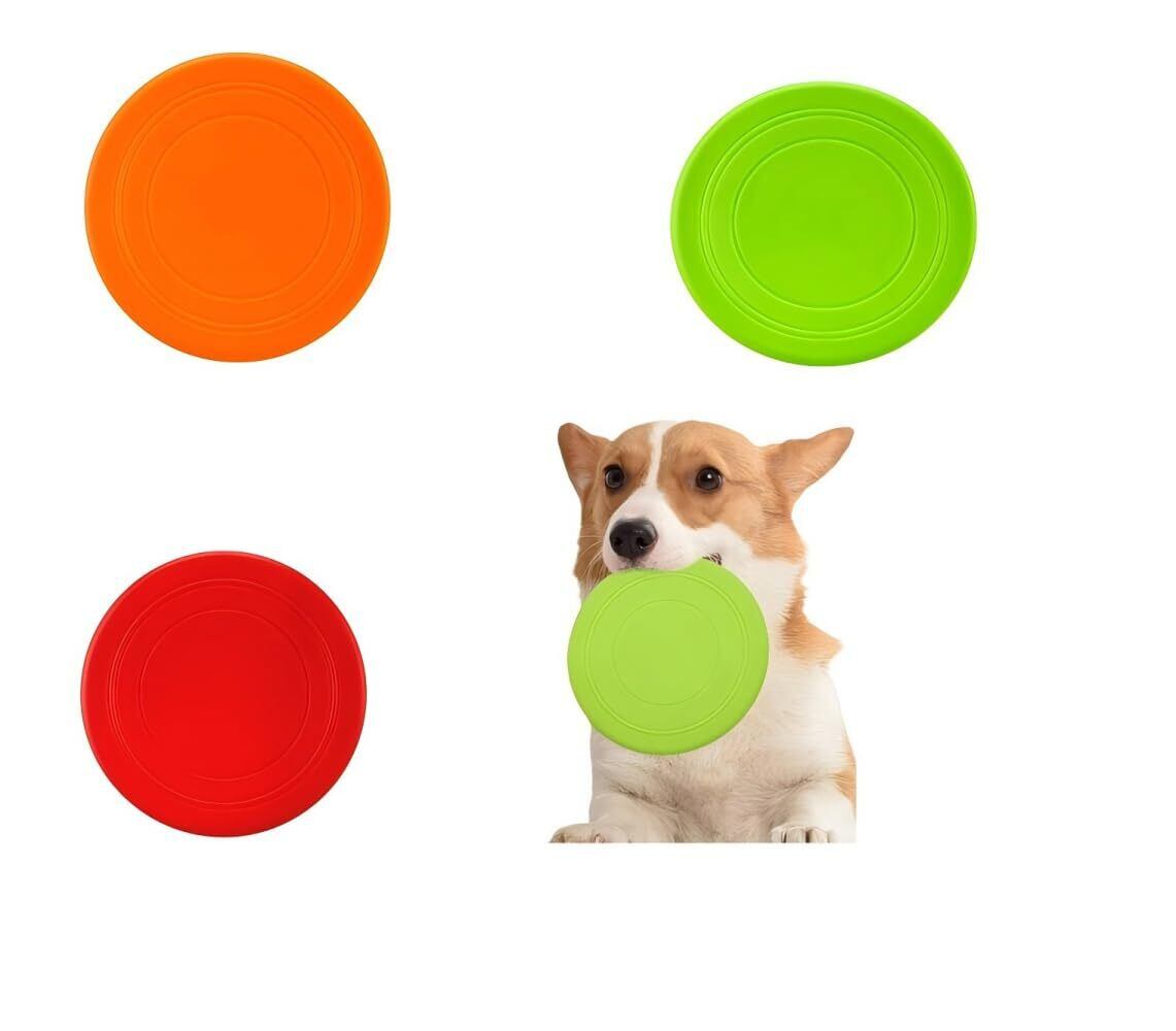 犬用ソフトフリスビー 3個セット 耐噛み強化 防滑グリップ 浮水可能 小型犬〜大型犬対応 トレーニングディスク カラフル3色(オレンジ・赤・緑)
