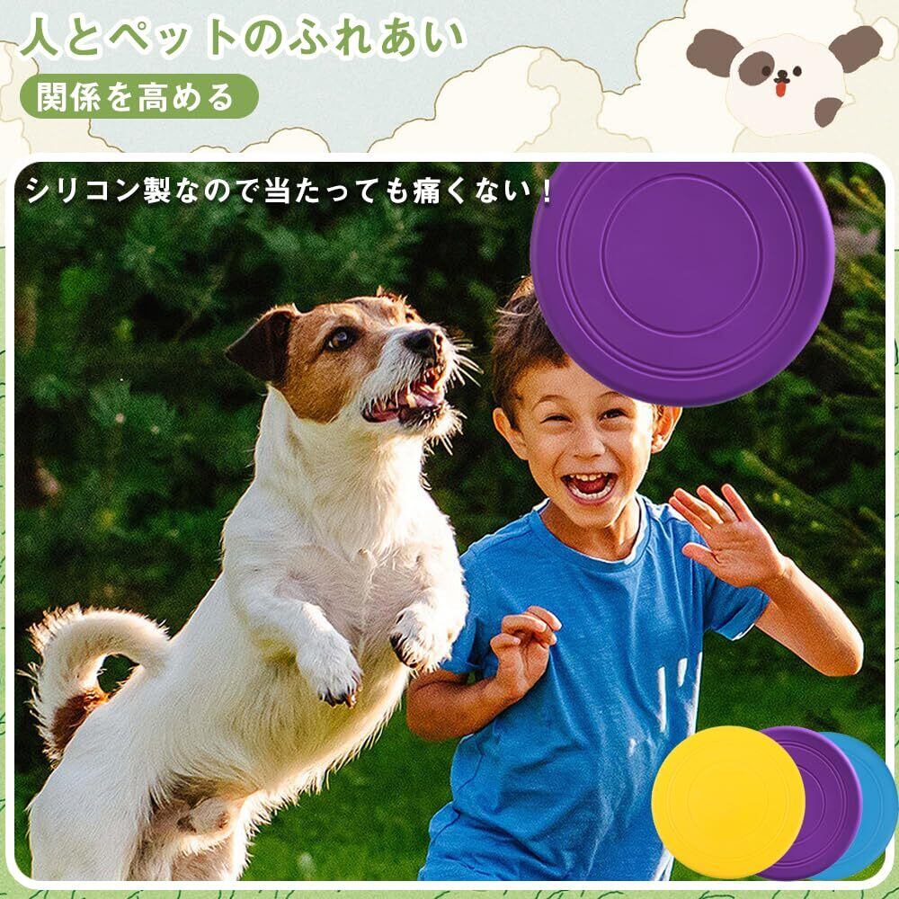 犬用 フリスビー 投げるおもちゃ 3個セット ペットおもちゃ シリコン製 軽量 柔らかい 犬用スポーツディス 耐噛み性 知能訓練 運動不足解消 フライングディスク 運動 小型犬 中型犬 初心者に適し 約17.5cm 水に浮くおもちゃ(パープル/ブルー/イエロー)