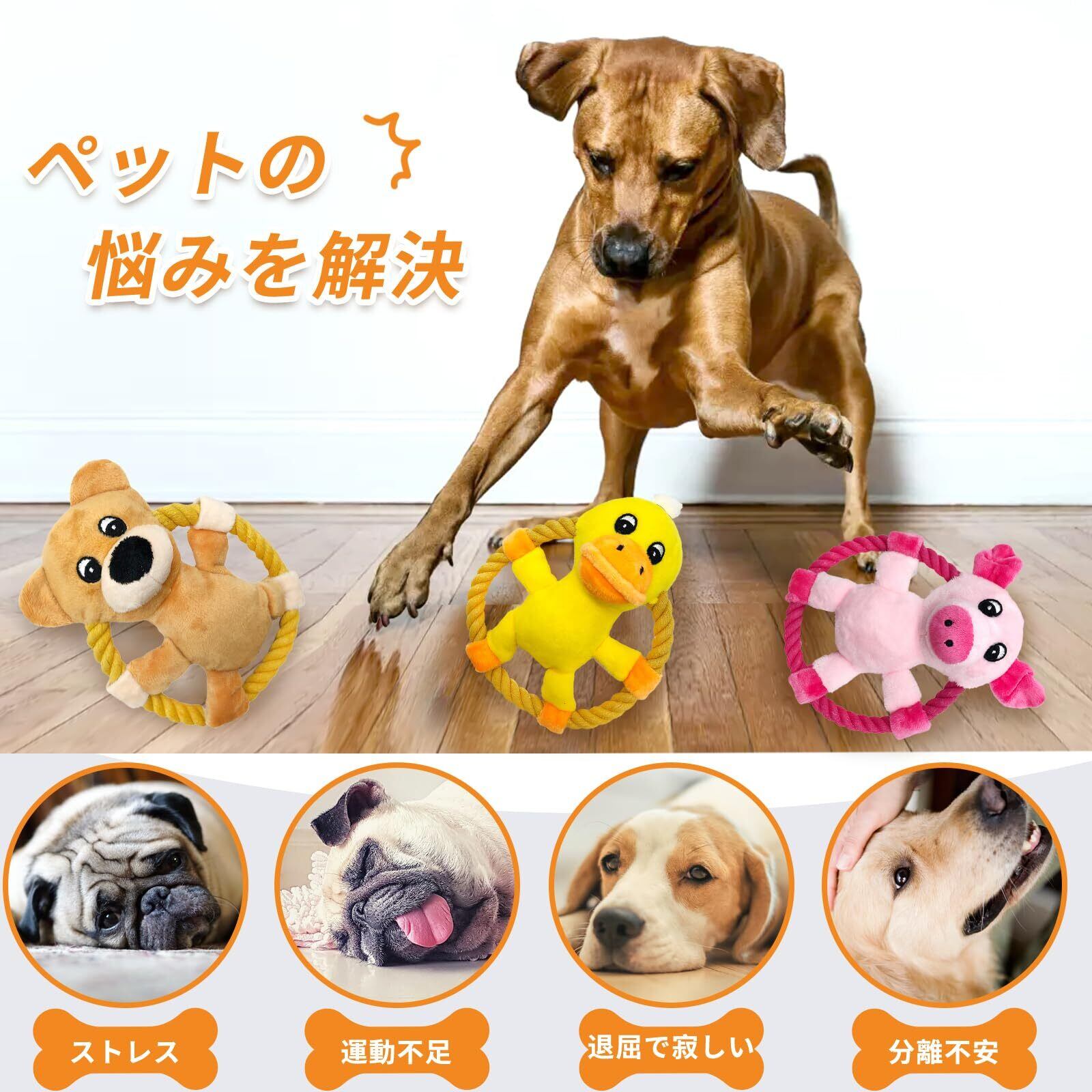 【人気商品】犬投げる玩具 フリスビー 噛むおもちゃ ぬいぐるみ 犬用 投げるおもちゃ 犬噛むおもちゃ 音の出るおもちゃ ロープ 歯磨き 可愛い アヒル 豚 熊 ストレス発散 運動不足 清潔安全 丈夫 耐久性 洗える 歯磨き 小型 ペット用品 (くま) | wakuwakuland
