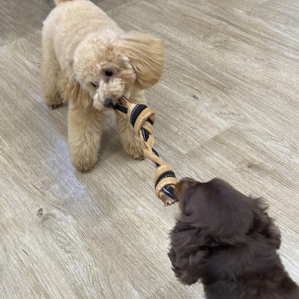 ・牛革の香りに誘われてガシガシ噛んでも壊れにくい丈夫なおもちゃ。