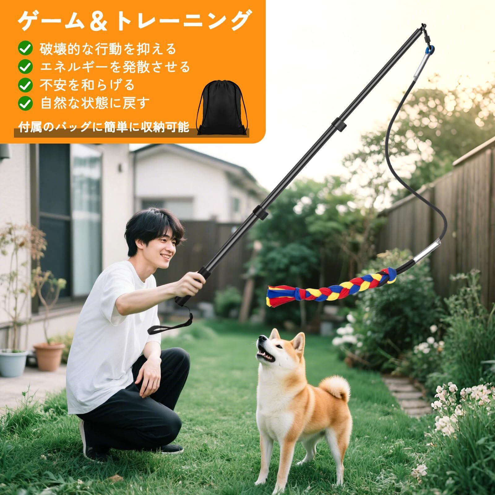 丈夫な巻き取り式ポール: 耐久性のあるトレーニングワンドは高密度スチール製で、犬の引っ張りにも耐えられる頑丈さです。棒の掛け金は引き込むために非常に便利です。クライミングバックルにはロックノブがあり、遊ぶ時の安全を確保します。