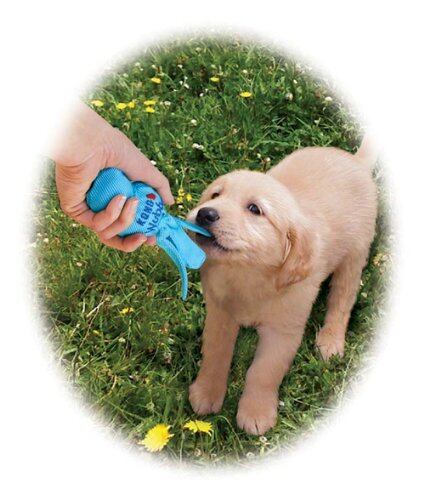 雪だるまにヒラヒラした4本の足がついたようなユニークな形状が犬の興味を引きつけ、どこでもくわえて遊びやすいデザイン。引っ張りっこ、取ってきて遊び、ピーピー笛など愛犬が大好きな遊びがこれ一つでOK! 子犬・小型犬用スモールサイズ。