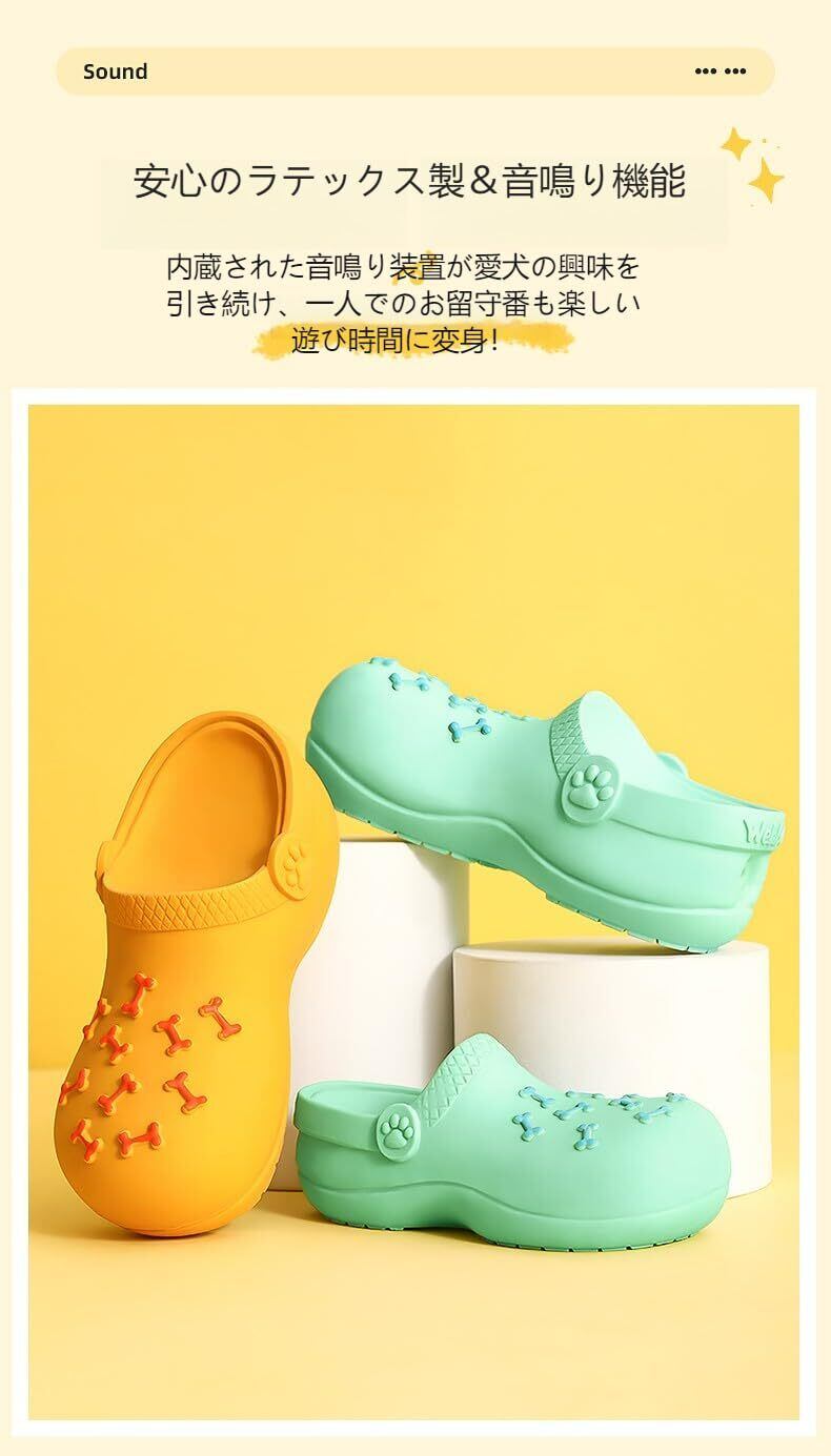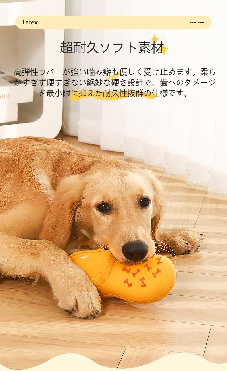 【安心のラテックス製&音鳴り機能】 歯や口内に優しい天然ラテックス素材で作られたシューズ型おもちゃ。内蔵された音鳴り装置が愛犬の興味を引き続け、一人でのお留守番も楽しい遊び時間に変身!ストレス軽減で家具破壊防止にも効果的です。