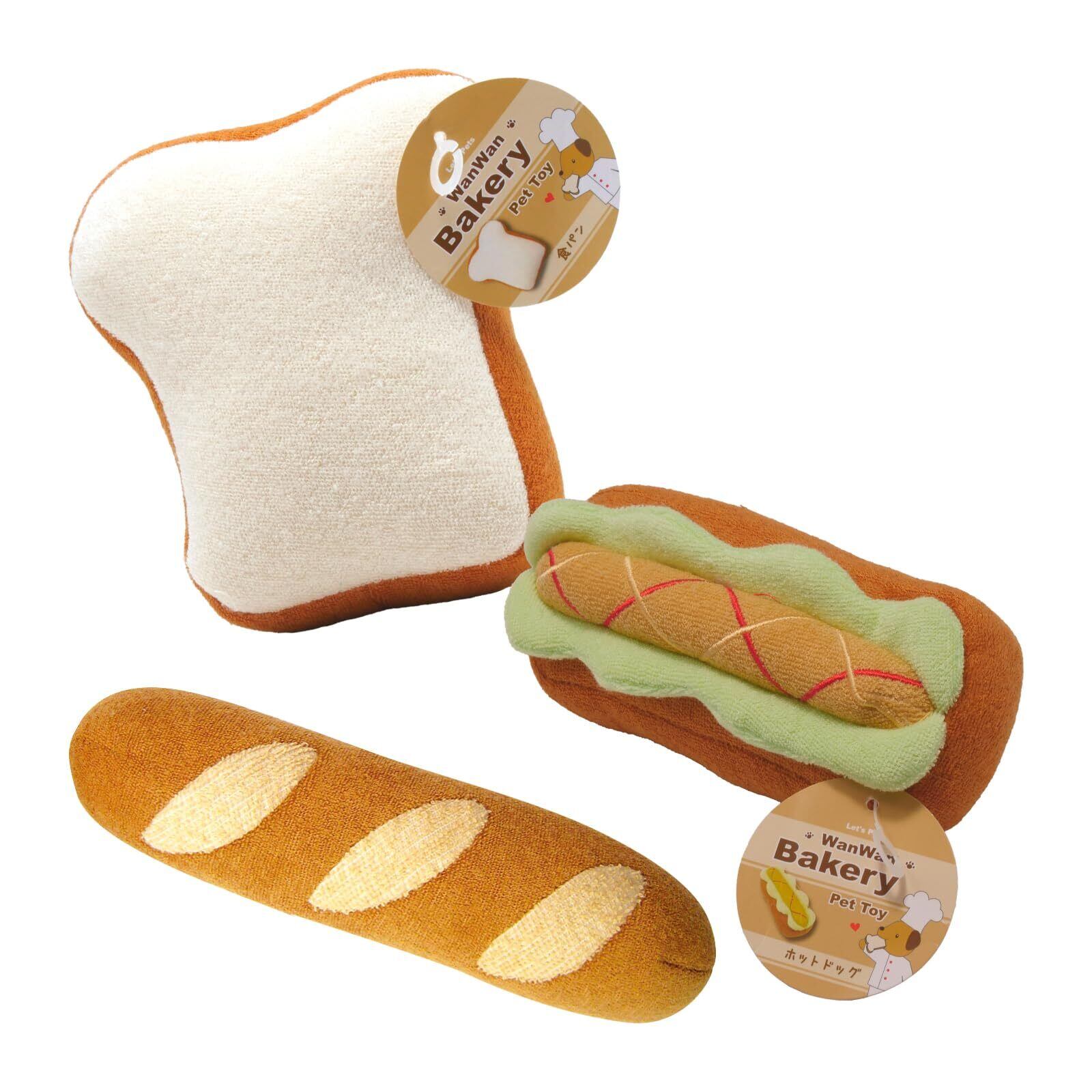 パンの形をした、「プープー」と音が鳴る犬用のおもちゃシリーズ「ワンワンベーカリー」