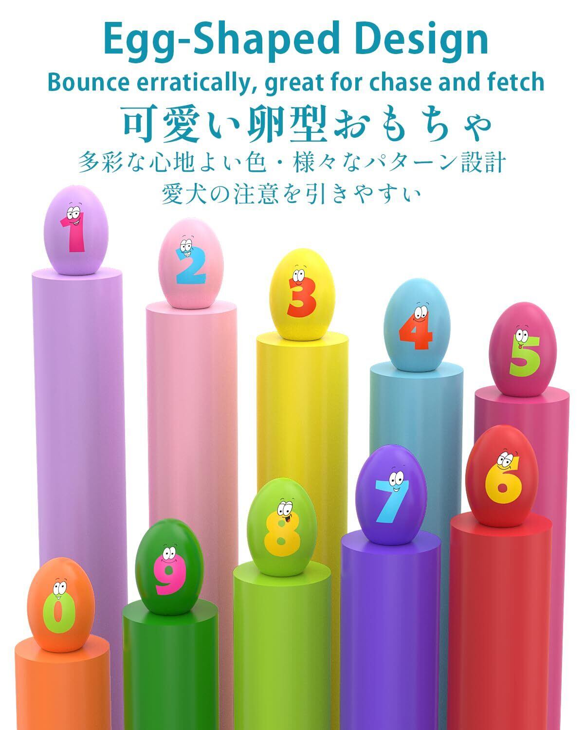 【特価セール】KrauzPet 犬 おもちゃ 音が鳴る 噛むおもちゃ 卵 【10点セット・数字パターン】 可愛い柄 ストレス解消 運動不足解消 投げる玩具 頑丈 知育玩具 小型犬・子犬に適用 歯磨き ボール 犬用玩具 | wakuwakuland