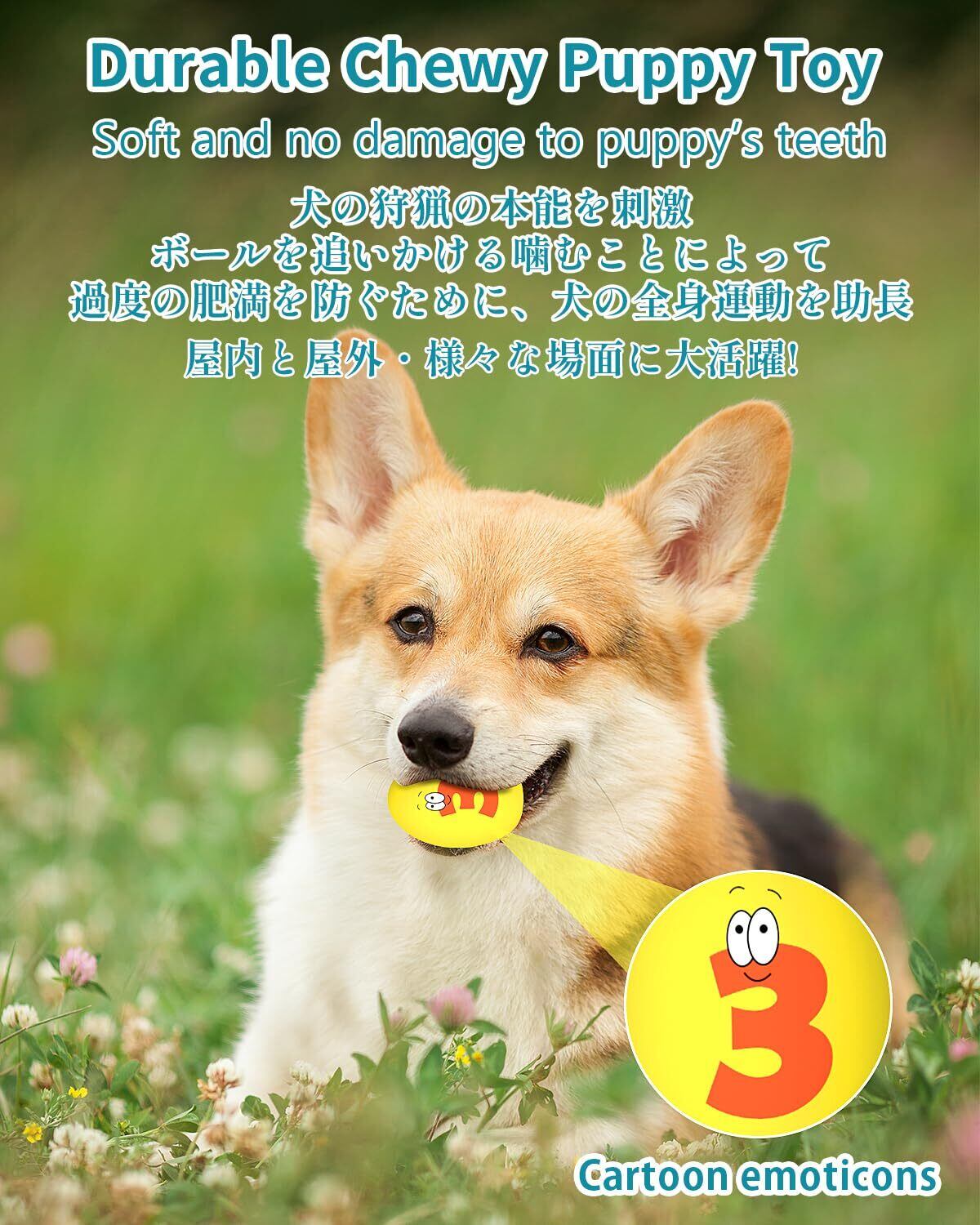 【多頭飼い家庭・犬は人間に共感する能力を高める】弊社の音が鳴る玩具セットは多頭飼い家庭に大歓迎です。愛犬たちが一緒におもちゃを遊びながら追いかける姿を見て、もっと楽しい時間を過ごす可能です。ボールのデザインなので、転がることができます。捨て投げなどのゲームをやりながら、犬と一緒に遊んで感情を深めることができます。