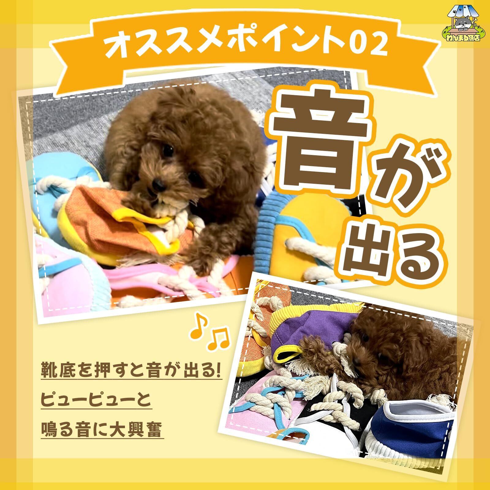 靴からピューピューと音が鳴り、わんちゃんの興味を引きつけることができます。