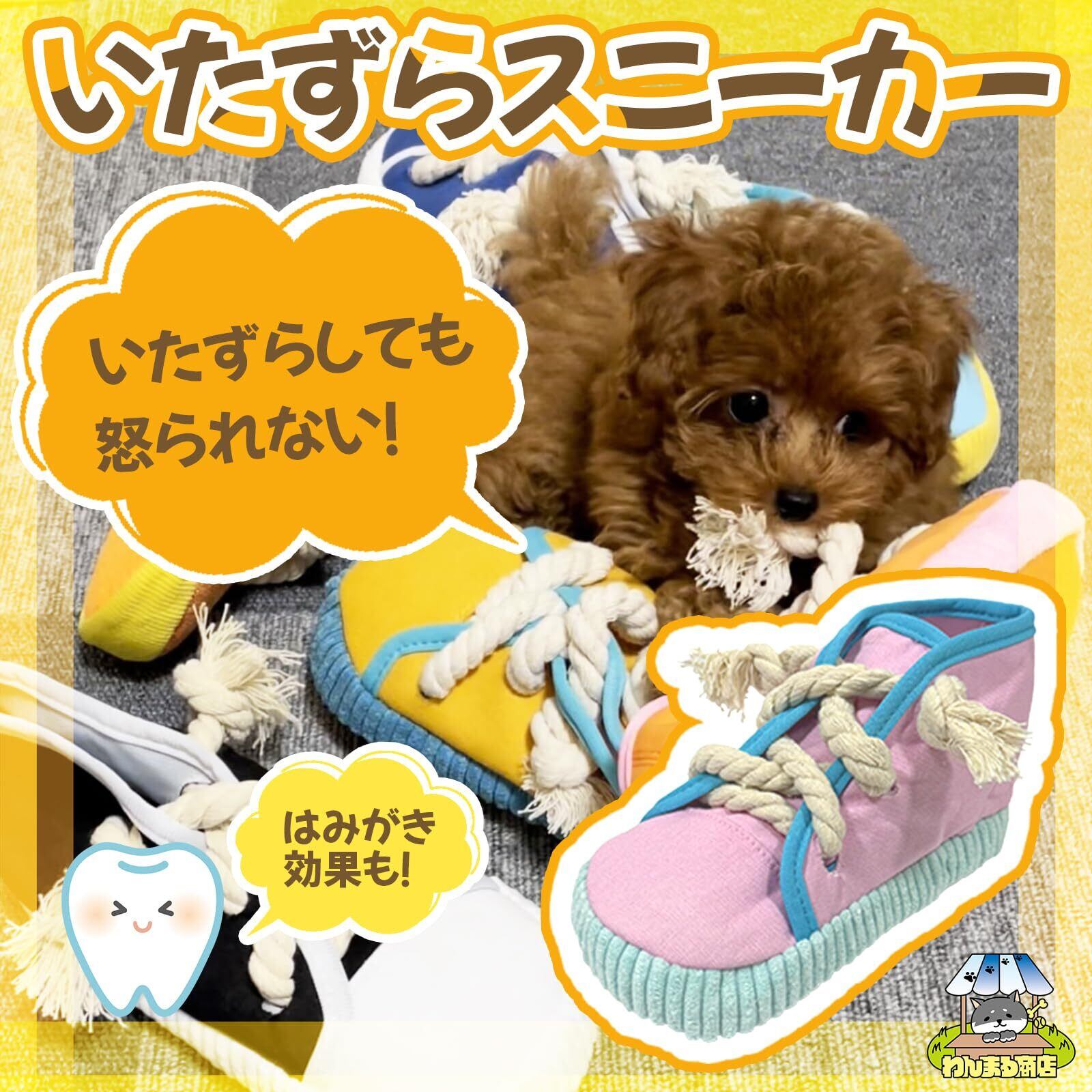 わんまる商店 いたずらスニーカー 犬 おもちゃ 玩具 噛む ぬいぐるみ 靴 音が出る ロープ プレゼント ギフト 小型犬(ピンク)