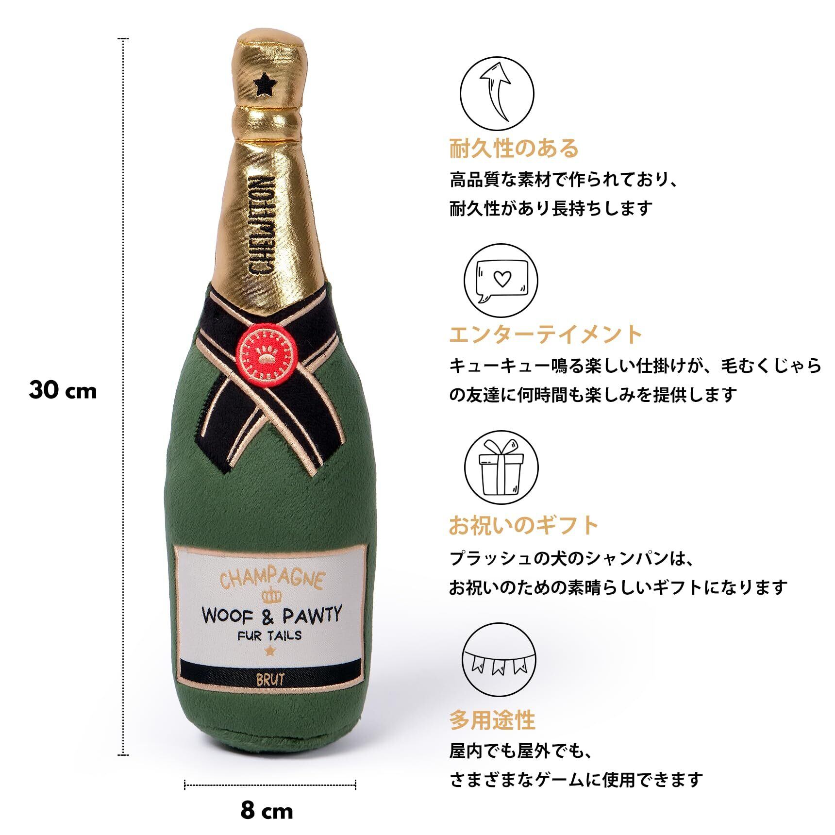CHEWFFON ドッグトイ、鳴るぬいぐるみおもちゃ、すべての犬種に対応、シャンパン型インタラクティブおもちゃ、誕生日プレゼントに最適、退屈解消の刺激的なおもちゃ
