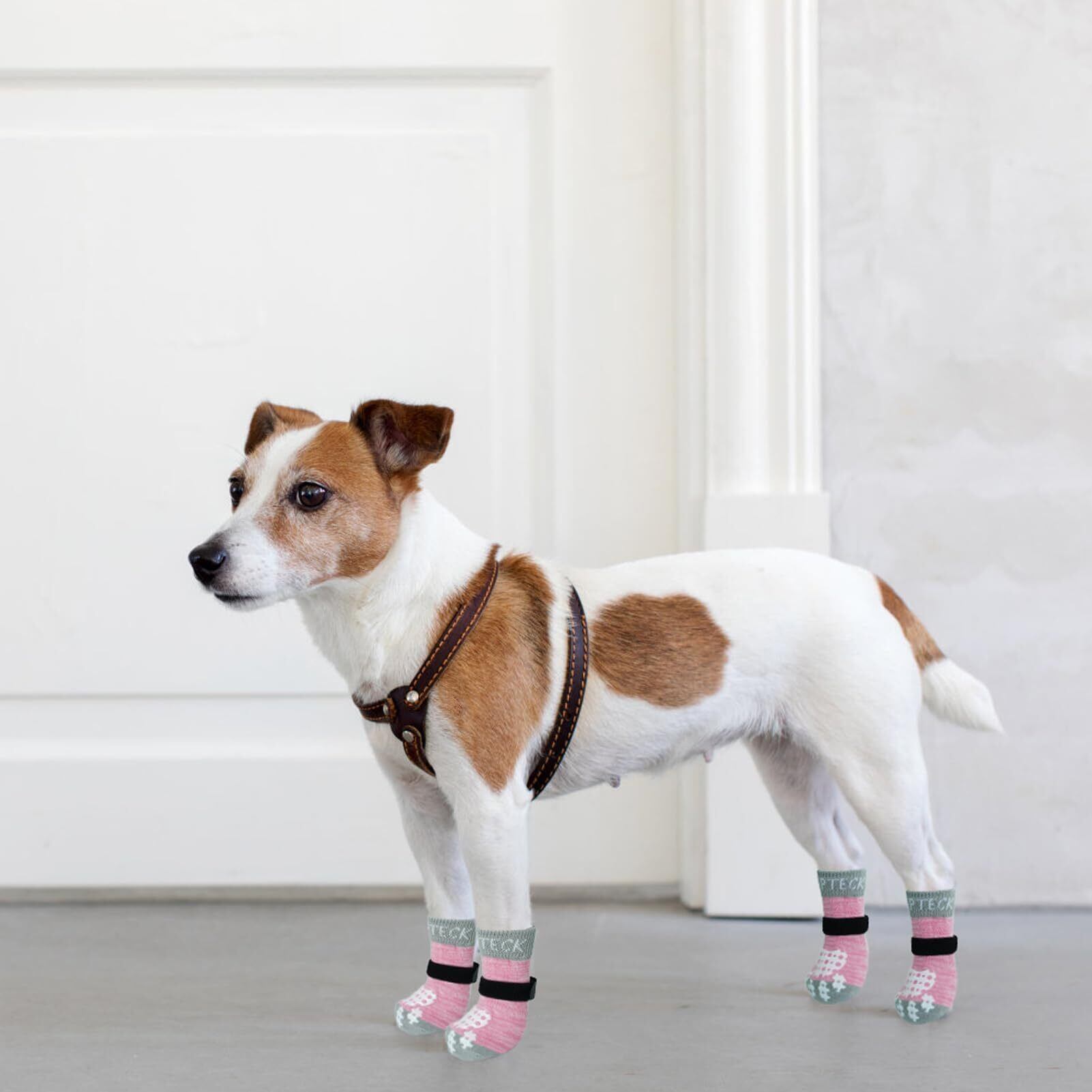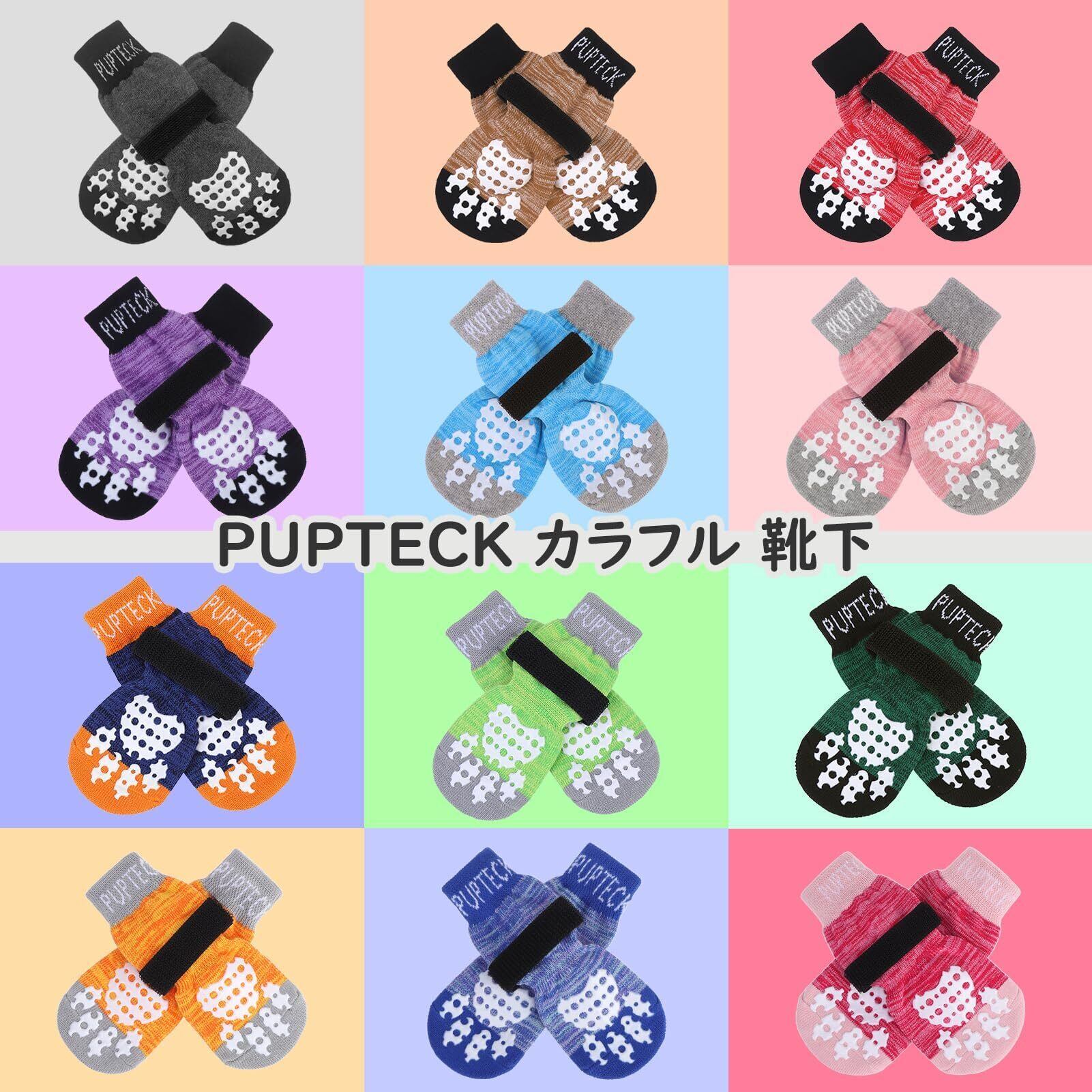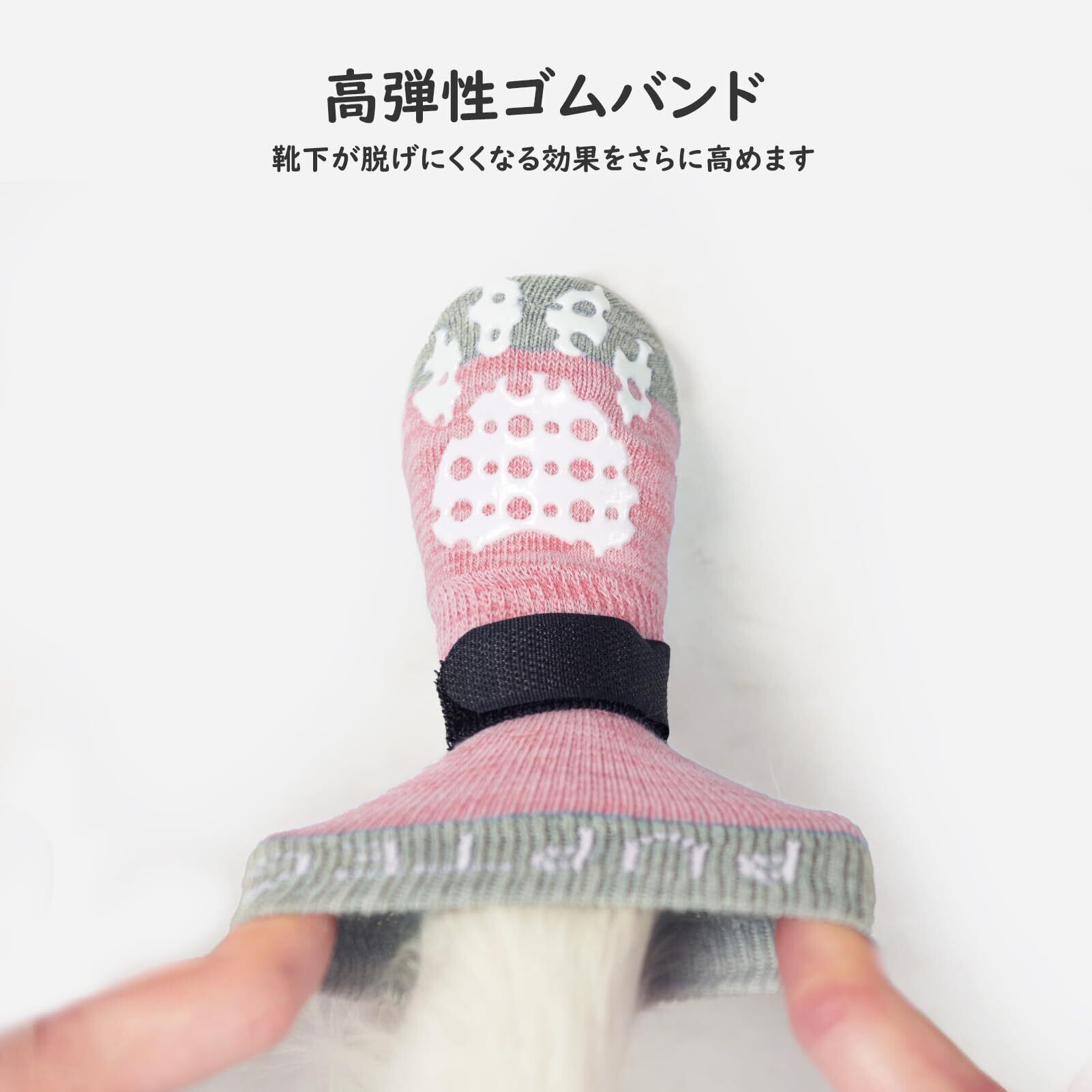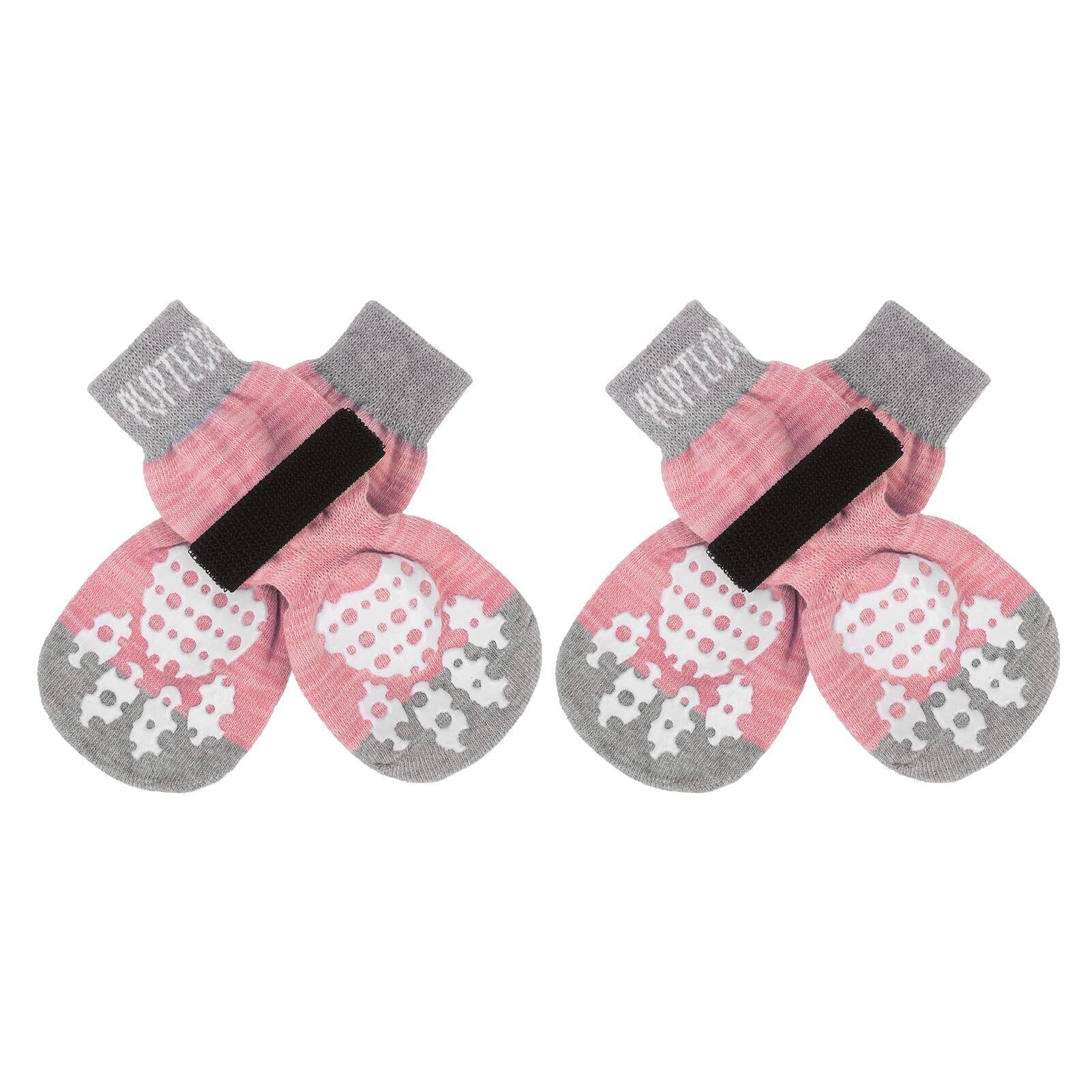 PUPTECK 犬 靴下 滑り止め マジックテープ付き 脱げない 舐め防止 肉球保護 通気性 柔らかい 介護 サポート 転倒防止 犬用靴下 4個セット 可愛い 屋内用 老犬 シニア犬 小型犬 中型犬 大型犬 (ピンク, XSサイズ)