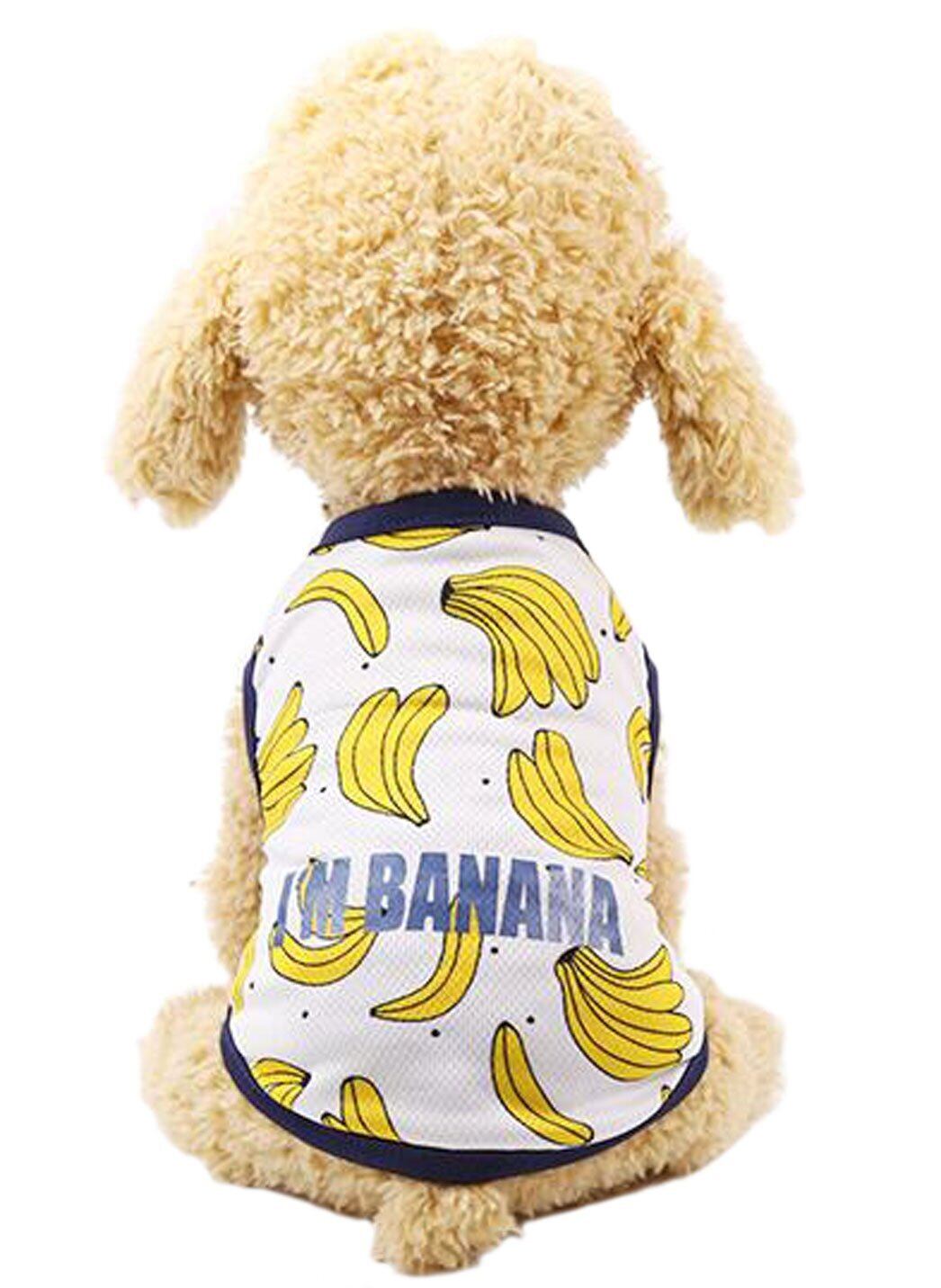 【人気商品】ふく福 可愛い 通気性メッシュ小中型犬服Tシャツ スポーツ服 お散歩お出かけウェアに 春夏服 ドッグウェア ベスト 日焼き防ぐ 脱毛保護 (M, バナナ Tシャツ) | wakuwakuland
