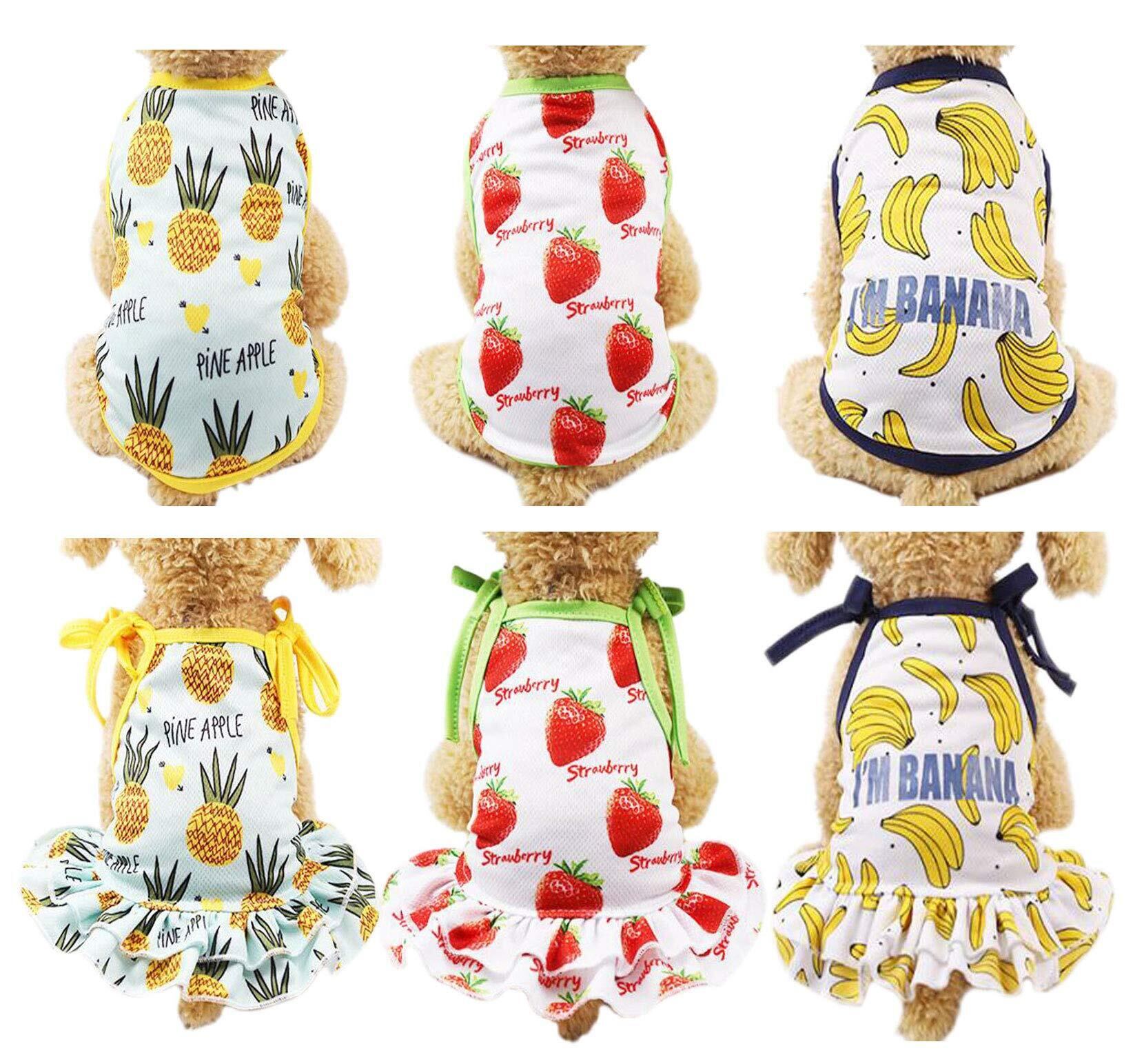 可愛い 果物柄 通気性 小中型犬服Tシャツ ドッグウェア ベスト お散歩お出かけウェアに ベスト春夏服 パイナップル いちご ピタヤ