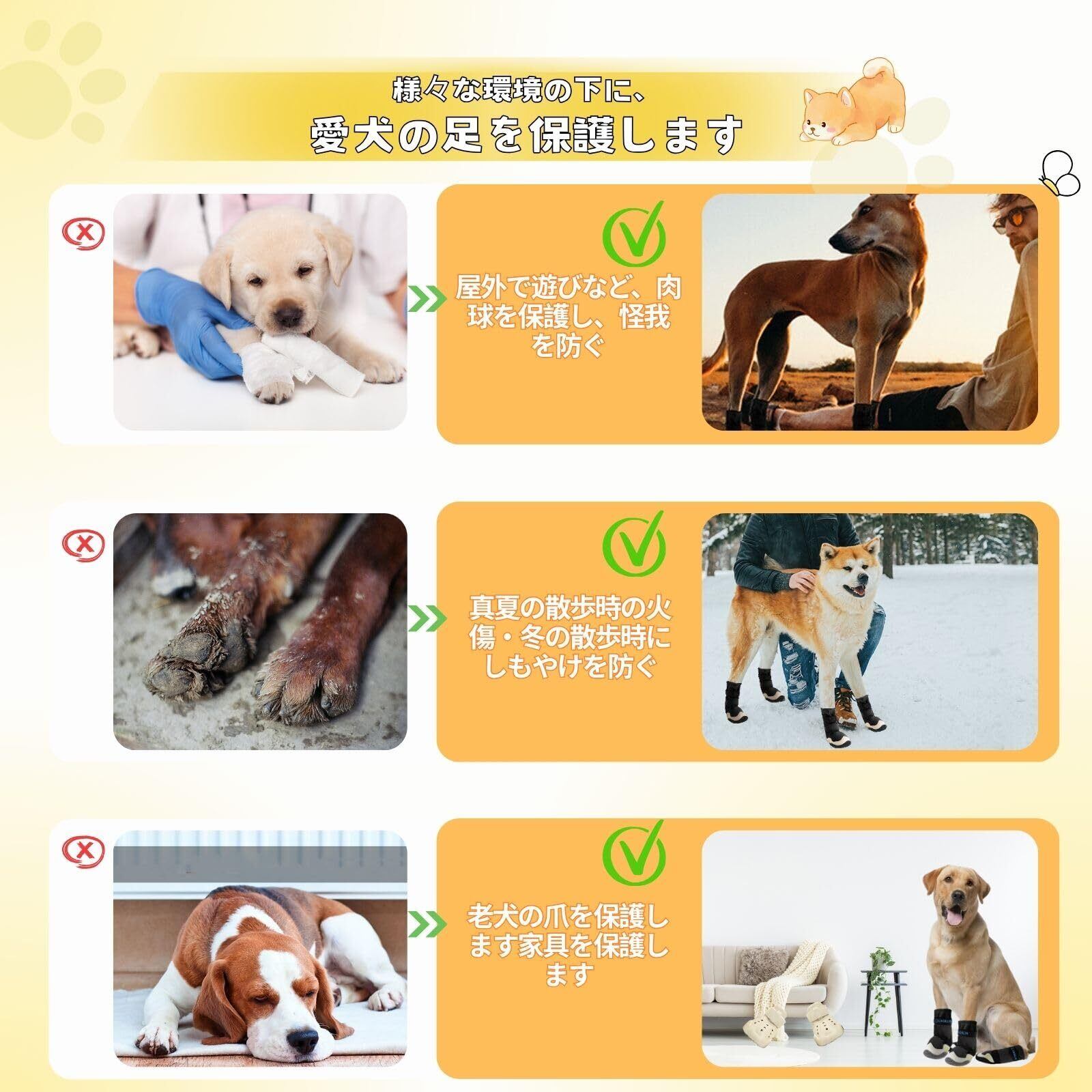 【履きやすさ・履き心地にもこだわり】 耐摩耗性に優れたソール、柔らかさと快適さを高めた履き心地で、移動速度を上げます。高品質の革で刺激的なにおいがありません。足に問題がある高齢犬には、屋内の硬い床に歩歩くことも神経を刺激されて、痛みが起こす可能性があります。犬用の靴は愛犬の足をサポートして、優れた保護を提供します。