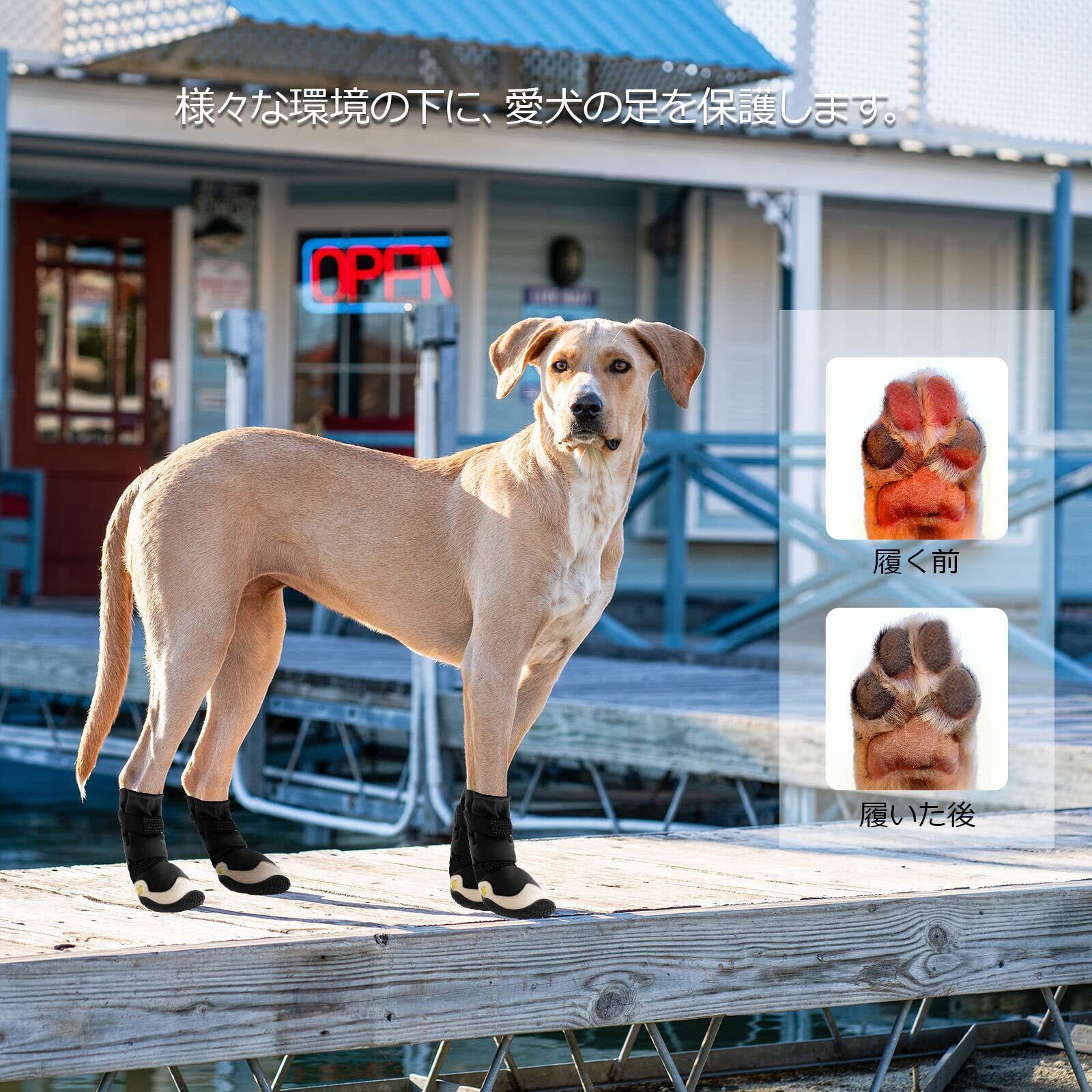 LIKOKLIN ドッグブーツ 犬靴 ドッグシューズ 犬 靴 防水 脱げにくい 犬の靴 滑り止め 肉球 保護 犬用 靴 犬用靴 犬用 シューズ ゴム底 通気性 愛犬のお散歩 防水 雨の日 中、大型犬 犬 散歩 介護 傷防止 すべり 止め 足元の汚れ 足舐め防止 反射マジックテープ 軽量通気 メッシュ お 4個入り (ホワイト, 5#(2個入り))