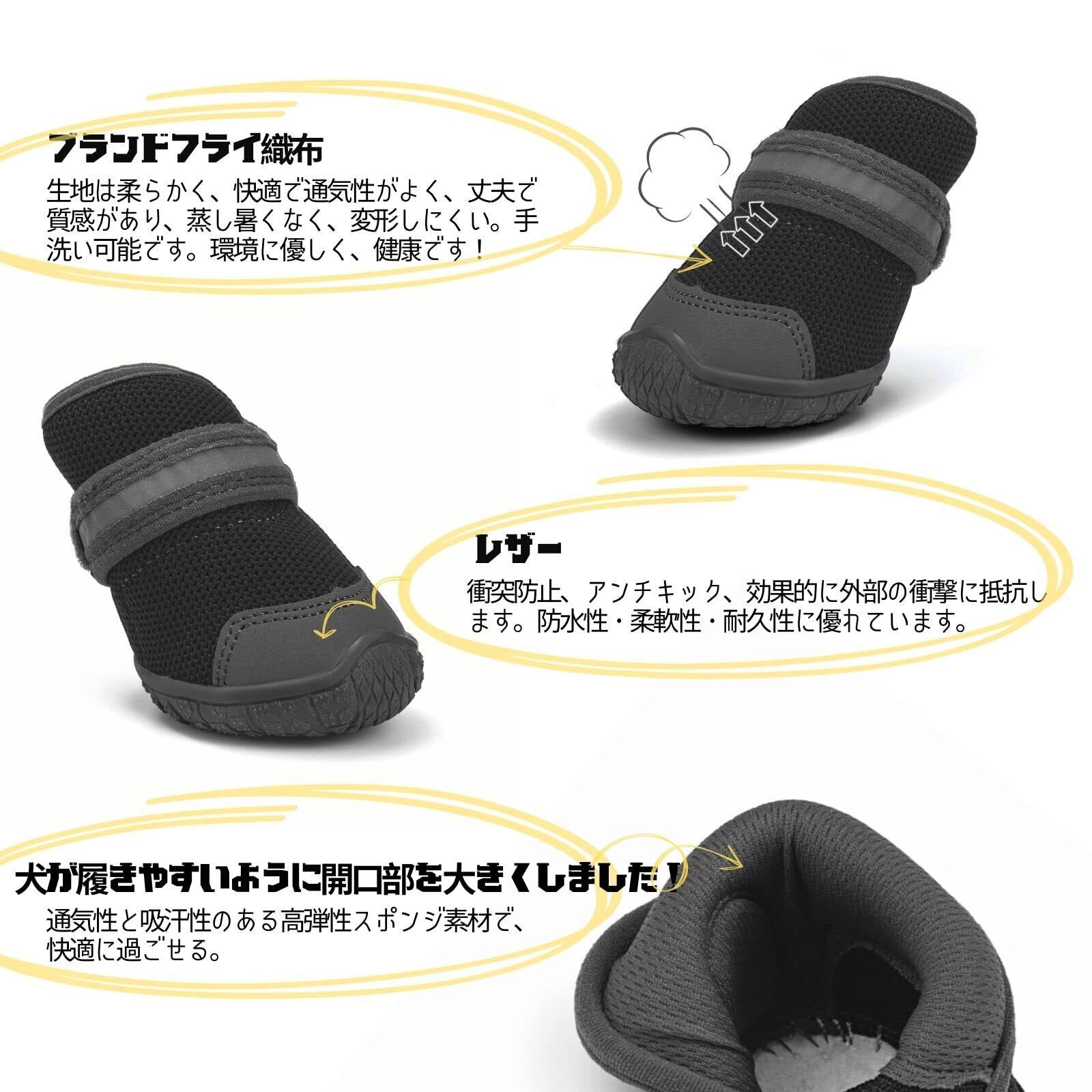 LIKOKLIN 犬靴 犬用メッシュシューズ ドッグブーツ ドッグくつ 小型犬 反射テープ付き 滑り止め 長靴 肉球保護 脱げにくい 散歩 通気性 犬用靴 犬くつ 犬のくつ 中型犬 4個入り/2個入り ブラック (3#)