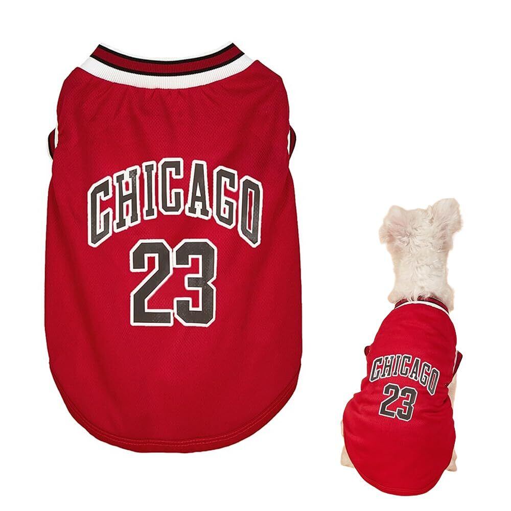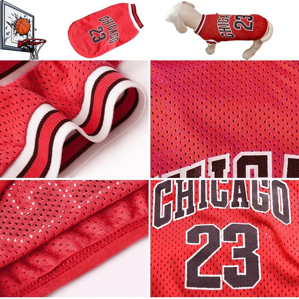 YBGGJO 犬服 犬の服 春夏用 Tシャツ 通気メッシュベスト タンクトップ 涼しい バスケットボールユニフォーム 23号 ノースリーブベスト お散歩 お出かけ ル服 スポーツ服 わんこ服 猫服 小型犬 中型犬 大型犬 (レッド, L)