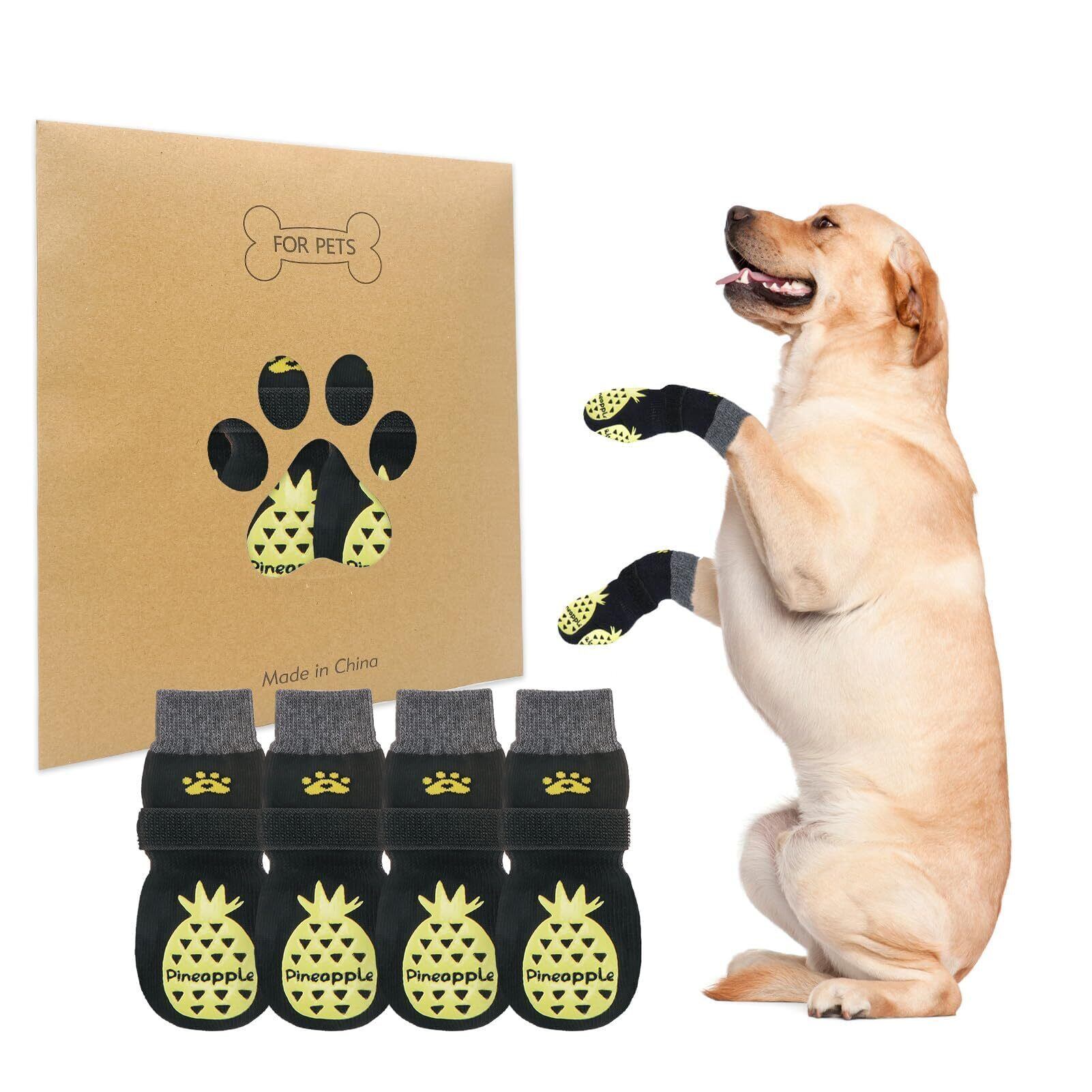【数量限定】BINGPET 犬 靴下 犬用靴下 滑り止め 4個セット 肉球保護 犬の靴下 柔らかい 脱げない ペットソックス マジックテープ付き 防寒 転倒防止 室内 屋内用 通気性 伸縮性 介護 老犬 サポート 舐め防止 抜けにくい かわいい おしゃれ 小型犬 中型犬 大型犬 (S, イエロー&ブラック) | wakuwakuland
